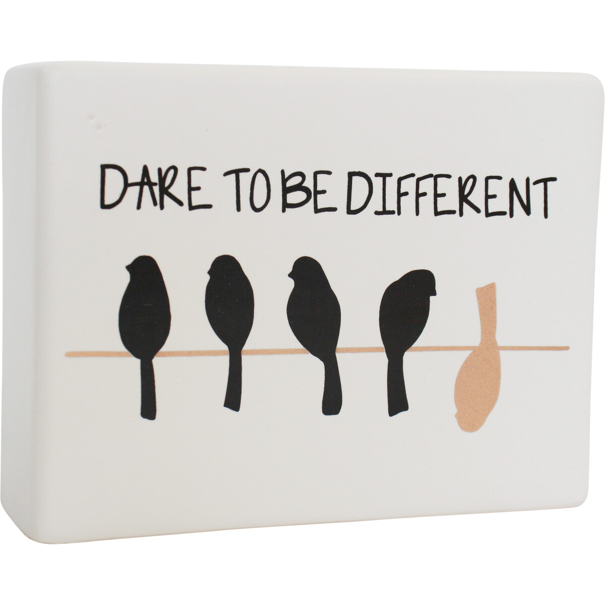 We absolutely love our Ceramic Sign Different and we think your customers will as well. This ceramic sign, measuring 13x4x10cm, offers a bold and fun message, reminding us all to embrace our unique selves. The little birds on the perch - and one upside down - say it all without much effort. Sometimes it's just fun to be different! We like this as a gift idea for the quirky person who loves to do things differently or as a quirky addition to the home or office of someone who needs a bit of motivation. Or even in schools where being different is accepted and encouraged.
