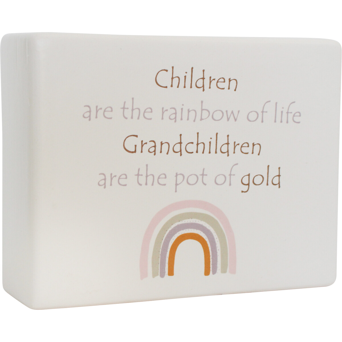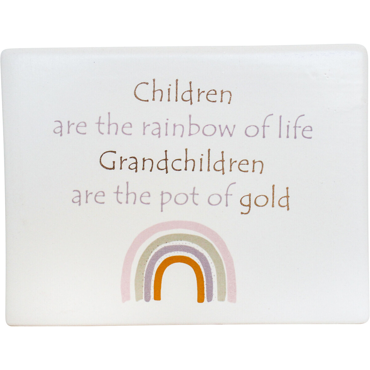 We all know grandparent gifts are a crowd pleaser - especially when they’re sentimental and authentic, like this beautiful Ceramic Sign Grandchildren. It’s understated but heartfelt - with that lovely pastel rainbow and the perfect message for any proud nan or pop who thinks their grandchildren are the world. We love that it isn’t too over the top - nothing overly mushy or glitzy, just genuine warmth. And with its handcrafted finish and a few imperfections here and there, it’s got that true individuality every grandparent adores. This piece is 13x4x10cm, done in a soft white ceramic (so, very easy to mix into a lot of home or office settings). Goes great with neutral themes, cottage-core looks, or cheerful family spaces. The pastel rainbow adds something gentle without clashing. It also works as an ‘anytime’ gift – birthdays, new grandchild arrivals, Mother’s Day or Father’s Day, Christmas season… loads of possibilities really. Feels sincere without being generic. Comes boxed and ready to go for your customers.