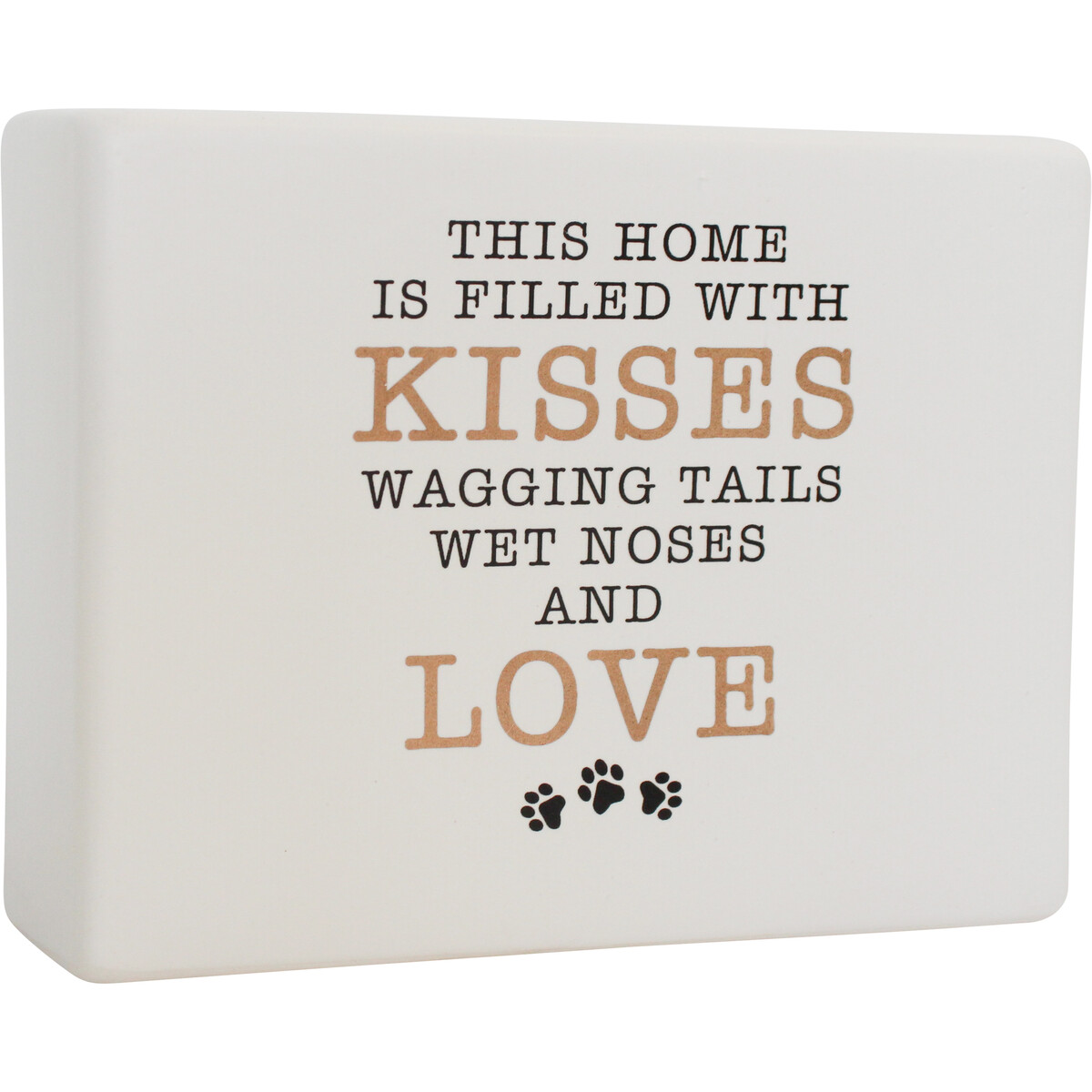 You probably know this better than us, but pet lovers, especially dog lovers, are always on the lookout for tasteful additions to their home or office decor that show off their love of dogs in an understated way. Our Ceramic Sign Kisses and Tails fits right in with that vibe with its neutral white finish and minimalist design language. The rectangular sign is made using high quality ceramic. It measures 13x4x10cm which makes it perfect for placing on tables, counters, shelves, cabinets and any other surface.