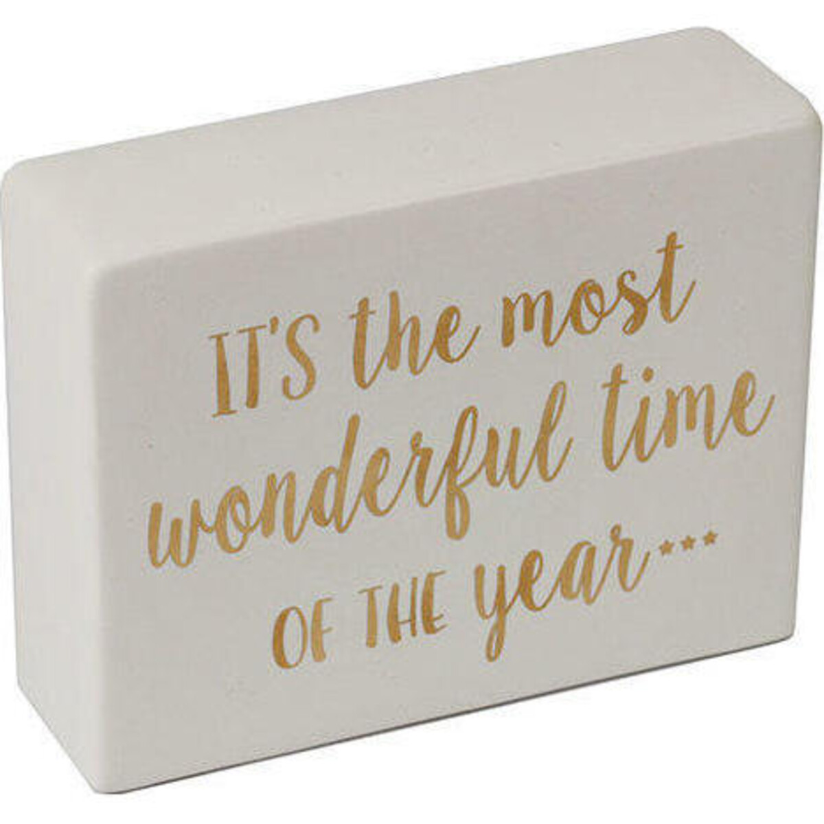 Be it a birthday, an anniversary of any kind or simply a commemoration - it brings minds or hearts together and makes it feel like a very special day indeed - why not extend the feeling further by placing your thoughts on a ceramic freestanding signage that says in very simple words what you would have loved to have declared - It's That Time of the Year! And what a wonderful feeling - an anticipation of a great occasion it manages to create. The smooth white ceramic is adorned with the golden print of these words and all you ned to do is make it part of the setting - maybe on a shelf or on the table where you would be serving some goodies or cutting a cake It simply extends your décor further by enabling it to blend in with the celebratory environment. The signage is a mere 10 mc high with a length of 13 cm and depth of 4 cm which allows it to balance well. Could be placed on tables, shelves and the console as well. Will be noticed for its small presence and the cheerful message it spreads all around.