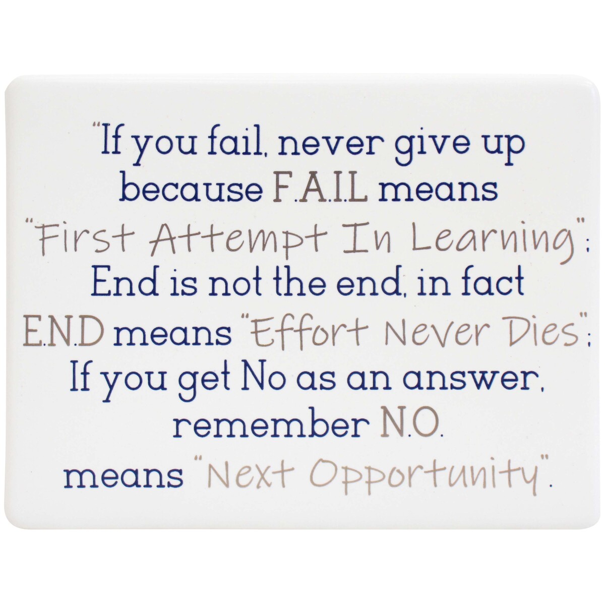 Our Ceramic Sign Opportunity is more than just wall art - it's a gentle nudge to never give up, to see every knock-back as a new chance. We think it’ll add a spark of hope wherever it’s placed. Crafted from high-quality ceramic, each piece measures 13x4x10cm. It’s perfectly sized to display anywhere - lounge room, office desk, hallway nook or even just by the entryway. The meaningful message and lovely font - and oh, the colour is neutral so you don’t need to worry about matching - really brighten up any space, making it ideal for any style of decor.