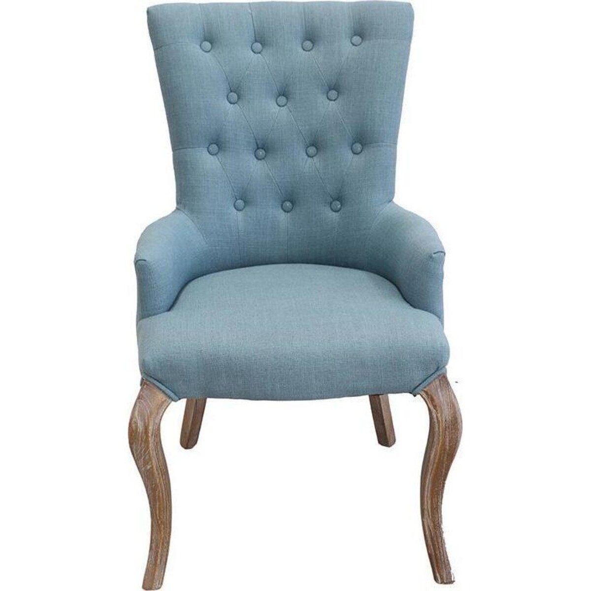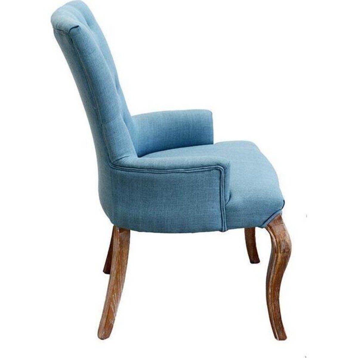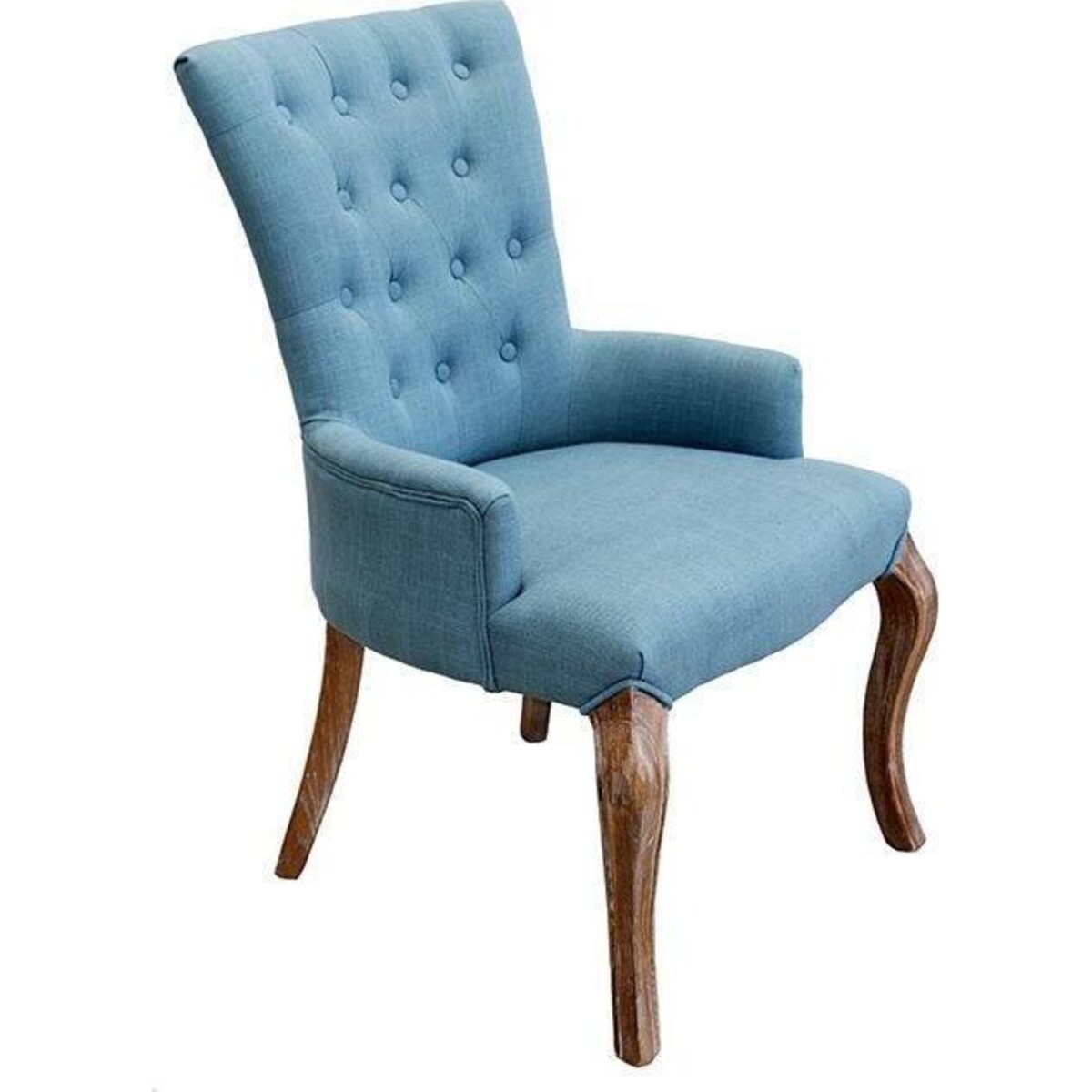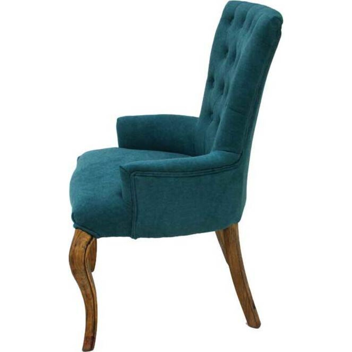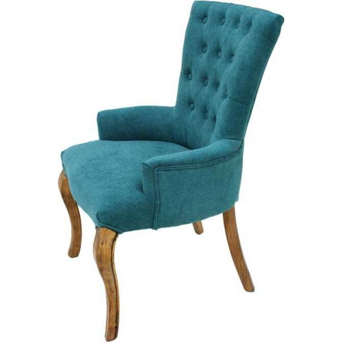 Some chairs for some reason go on to become statement pieces in one's interiors, be it for its extreme comfort, its great looks or could also be because of its great styling. In the case of this teal upholstered chair, the confluence of all these factors is what has happened. A high backed chair that has naturally moulded upholstered armrest which looks all the more classic because of the fine craftsmanship seen in the wood portionsébe it the legs, the curved seat and the rather imperious and regal looking back that rises up to 94 cm and provides ample space in its 56 cm width, thus automatically making it a chair worth a second look not just because of its sumptuous size but also its artistically designed looks. The teal upholstery too adds juts that element of baroque magic to interiors, royal yet light enough to be flirting with bohemian chic. High on levels of comfort, the angle of the back too has been designed keeping in mind the correct posture needs for the back. A great add on to the bedroom or living room if one is seriously considering style with comfort.