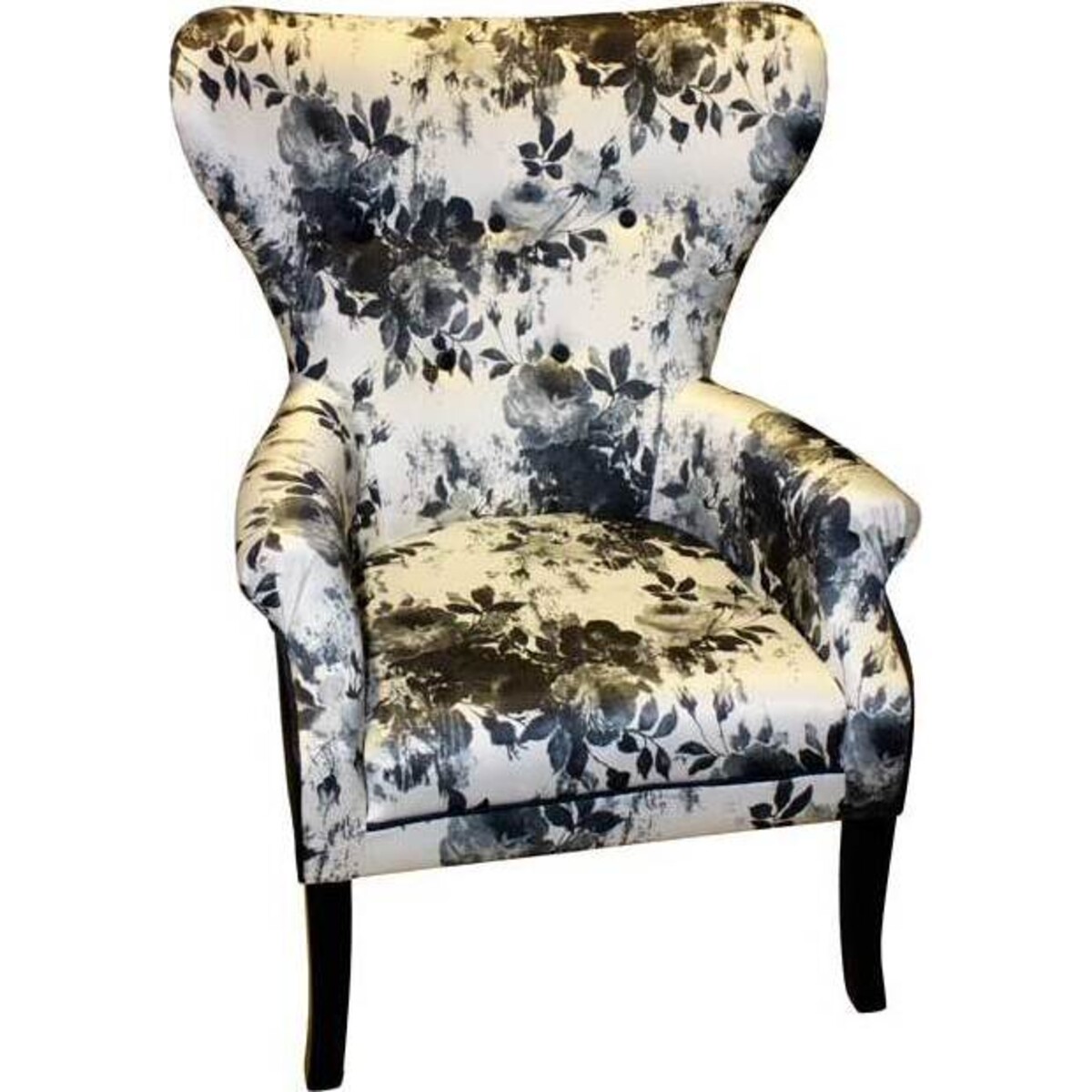The black rose chair is a stunning piece of furniture that immediately catches the eye and encourages a passerby to take a pew. The stunning black rose print pattern runs across the front of the cream chair and it's intricate detail is simply beautiful. Underneath the arm rests and at the back of the chair you?ll find high quality leather has been beautifully integrated into the design giving this chair an even more unusual and yet appealing appearance. Long, elegant and graceful legs support the chair, and rather than hiding away they are also an attractive feature of the chair. The profile of this high backed chair conjures the image of a butterfly with it's flared shoulder area. This chair creates a balance between light and dark colours with a black back, a white back ground and grey pattern. Simple looking from the back but intricate from the front, this chair is sure to please a multitude of aesthetics.