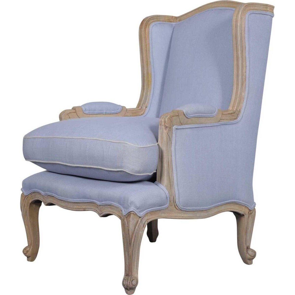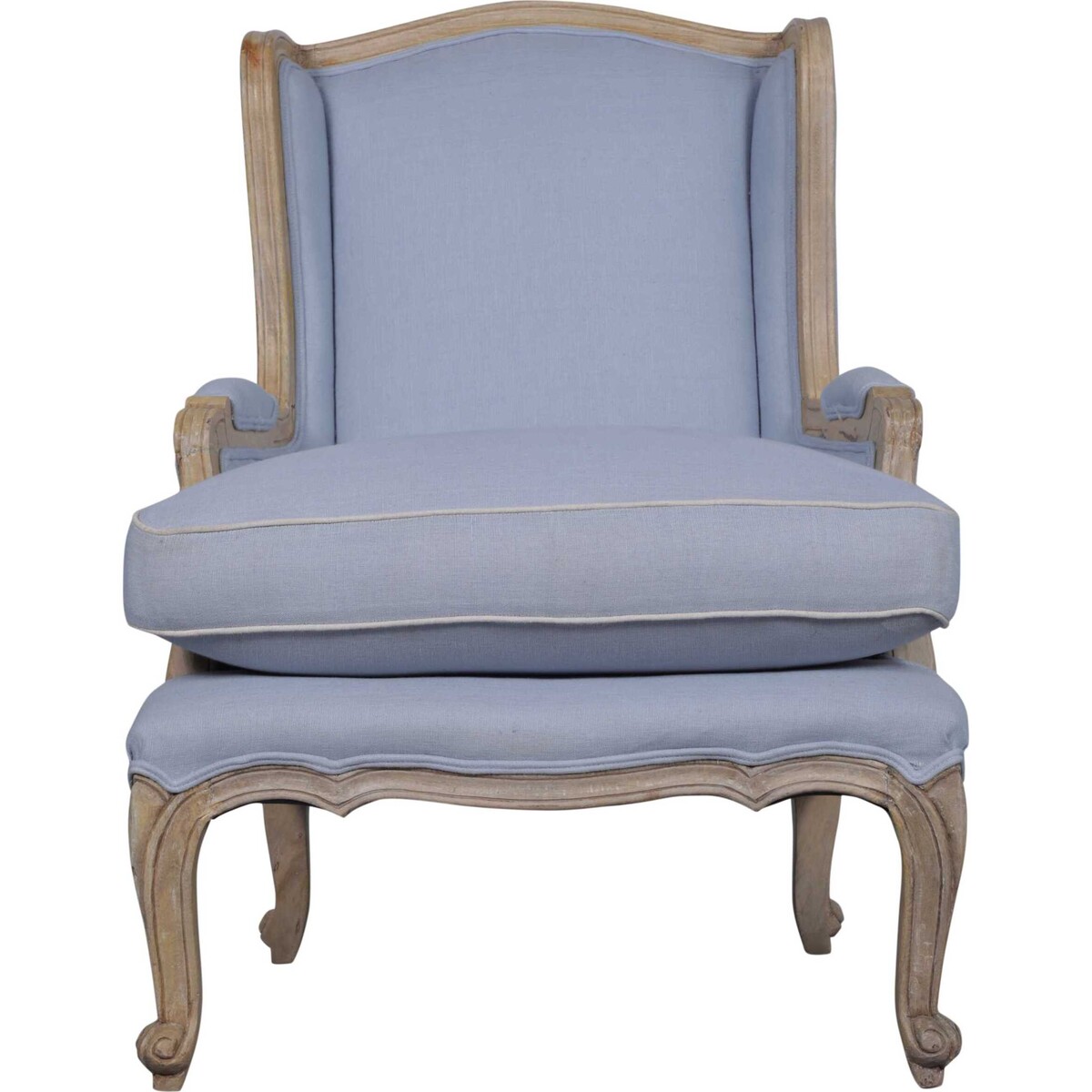Perfect for resting, enjoying a cup of tea beside the fireplace or watching tv, this French armchair mixes the classic French frame with chic upholstery to compliment any colour scheme. It features hand - carved mango wood frame with cabriole legs, upholstered back, armrests that are padded and finished with a neat flange making this a classic item of the highest quality. The one down filled accent pillow has a nice white double welt edging and you may even remove the cushion pillow on the seat and use it as a footstool or footrest. This chair is very comfortable to sit in and its enclosed back gives you some privacy and personal space.