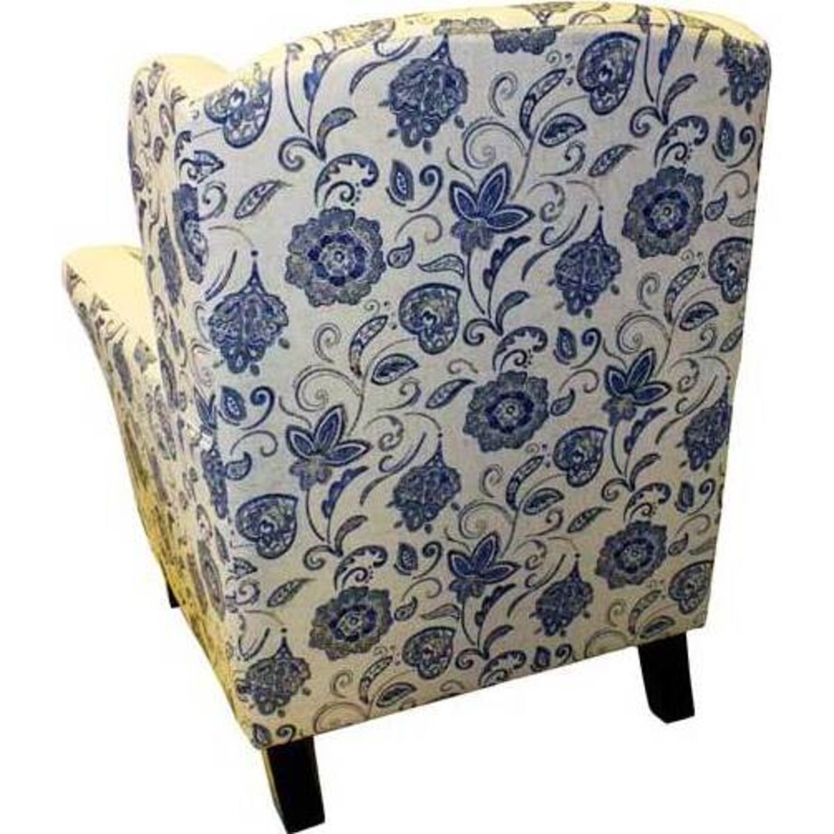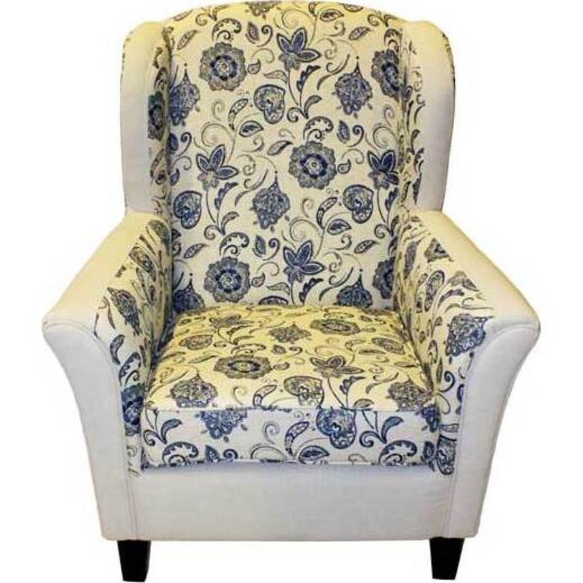 The floral blue chair is an absolutely stunning show stopper that is bound to attract the attention of your customers. The fabric is made up of an intricate floral design which includes a variety of big bold blooms, leaves and long stems. The beautiful and classical print is used in the seat and around the sides and back, however, between the two is a stunning panel of white that runs the length of the arms and at the bottom of the seat. Supporting the chair are four sturdy strong looking legs made from a dark wood. It?s the small pieces of attention to design detail that makes a big difference the impact the fabric has on the design of the chair. This chair would immediately give any home a look of class, and the chair could be easily paired up with any existing white or blue furniture without looking out of place.