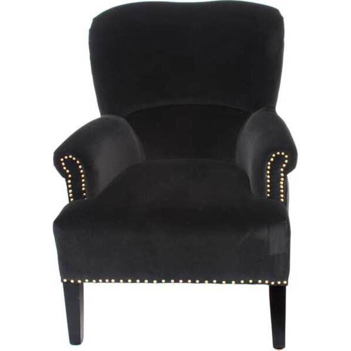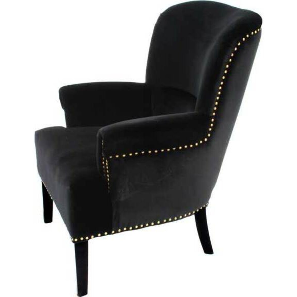 Dark and deep seated armchairs are particularly masculine and look wonderful in environments where the decor demands something more classic in terms of design and look. This armchair made from dark plush upholstery, sturdy wooden frame with simple legs instantly gives the look of cool sophistication that is further heightened by the brass rivets that line the frontage of the armrest and the face of the lower part of the chair. The soft cushioning under the velvet cloth, the neat stitch and seams of the chair and the birch wood frame all compliment the concern for high quality that this chair hopes to achieve. A masterly stroke at elegant designing this chair blends in strong structural features with plush looks and makes a product refined in taste and high on standards of quality. The dark upholstery and the rivets in brass looks very old world and elegant–a great buy if one is looking for a statement piece that could help resuscitate the look of any kind of interior.