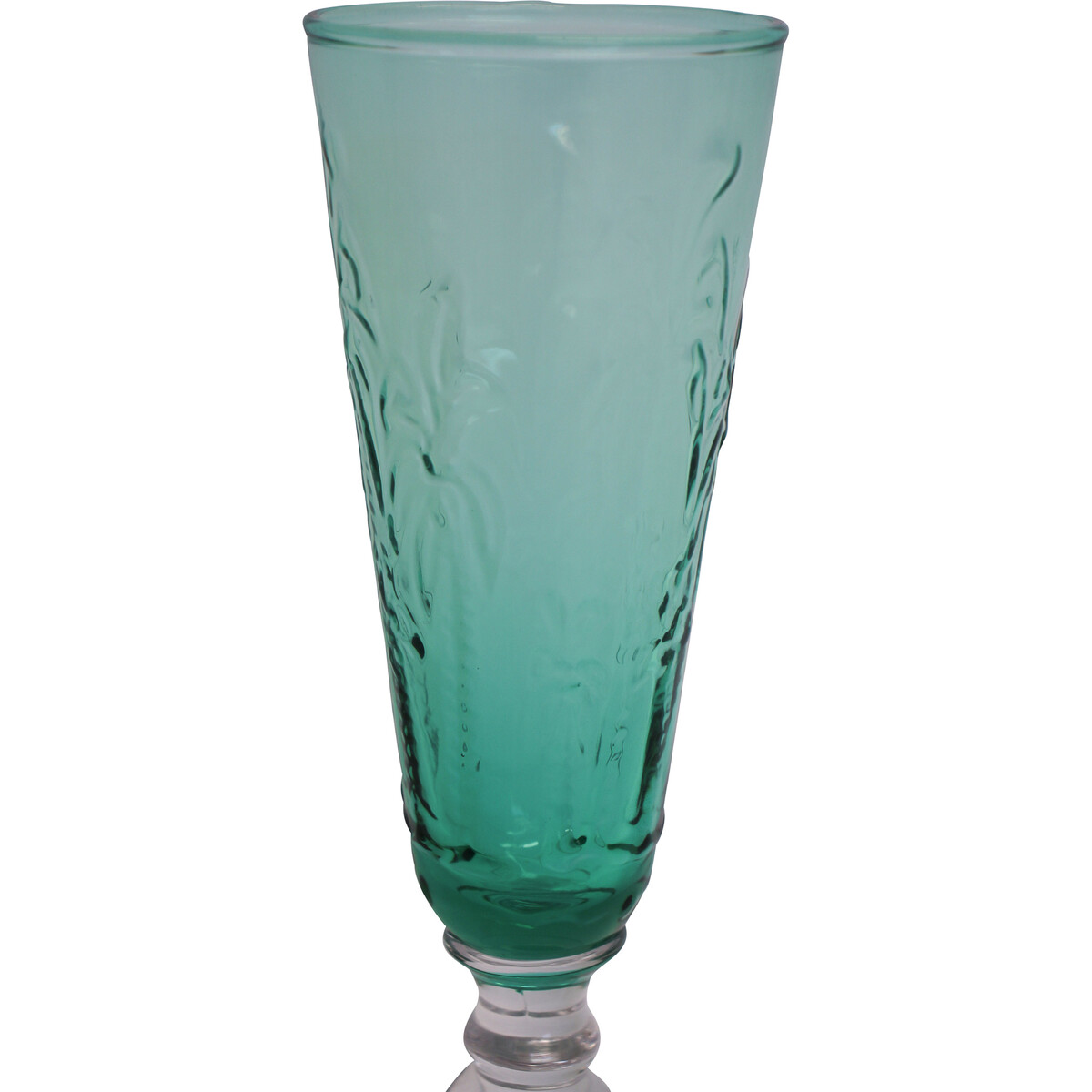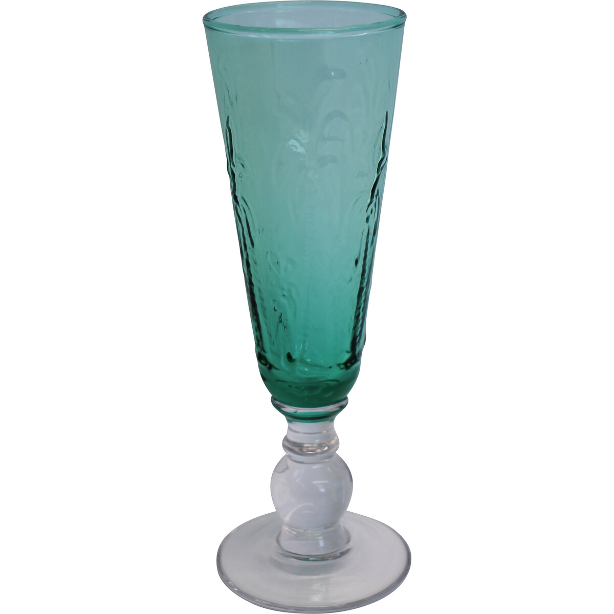 This champagne flute has a tall slender shape that keeps the bubbles alive for longer, enhancing your experience of the champagne or sparkling wine. Toast to world-class affairs with a classy champagne flute in hand, as you bring over the lovely Palm Aqua Champagne Flute. Made of lead-free glass, you can now savour every sip of your drink minus the toxins. With a chic crystalline bowl that gradually tapers into a solid stem, this glass brings a luxurious twist to any setting. Dishwasher safe; get set to enjoy your favourite bubbly minus any cleaning hassles. Featuring a pattern on the outside, count on these crystal glasses to add haute bling to each and every one of your celebrations. Exquisite enough for use in the hotel and home space, or to be presented as a wedding, housewarming, achievement gift.