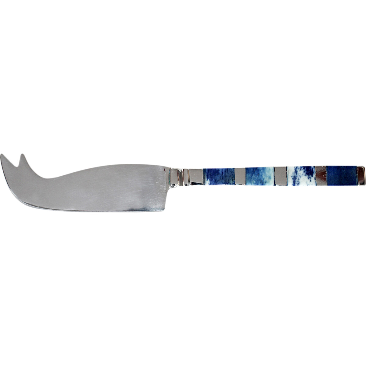 Every element of this stainless steel cheese knife is designed with efficacy in mind with its forked tip that breaks apart crumbly hard cheeses and its non-serrated sharp edge that is perfectly designed to cut through different types of cheese. Made of shiny stainless steel, bone and brass, its handle is decorated with a variety of alternating cool blue and silver stripes giving it a fresh and breezy shoreline spirit and will match perfectly with the other items in our Blue/bone range.