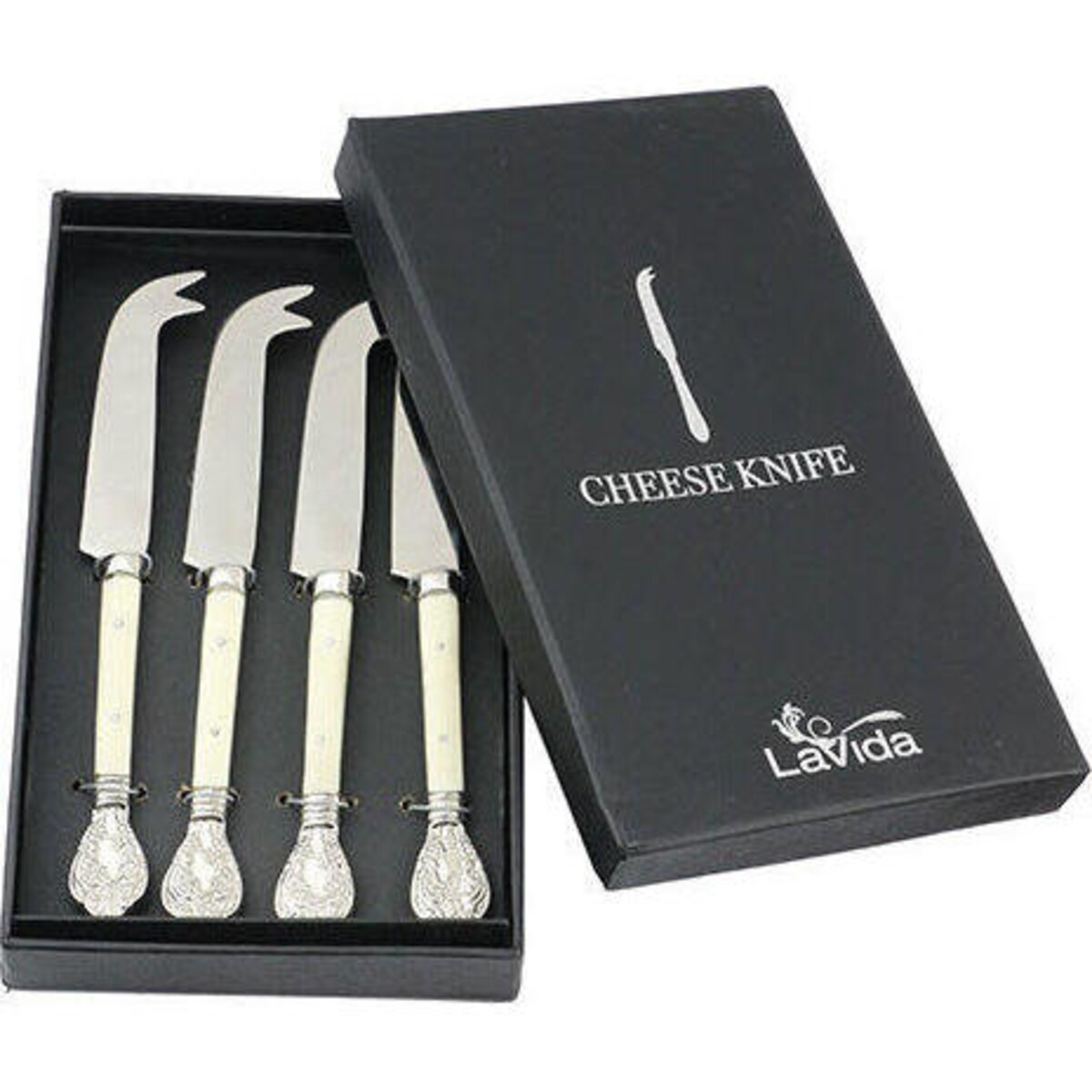 Be it firm hard cheese to semi hard ones, it would need a sharp yet well designed knife to make neat slices and present the same to your plate. Why not adorn your table with the right kind of cheeses knife that makes the job easier, gives a neat clean cut and makes the joy of serving cheese all the more special. The Byzantine design head of the knife of course is another fabulous reason to make it apart of your dinner table as it not just looks rich and antique but serves the purpose of making your dinner table especially dressed up for sophisticated dinner celebrations. The quality of steel used is tarnish proof and very high quality-the kind that will retain a new and clean look for many years. The set comes with four pieces and will look appropriately suited for all kinds of dinner table setting. Created for lasting strength and durability - this would soon be your favourite cutlery in no time at all.