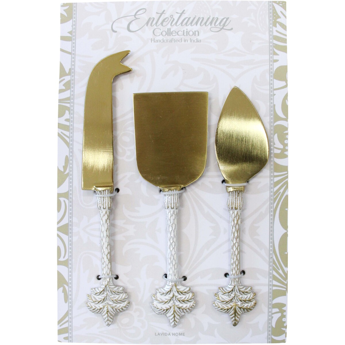 Discover the elegance of the Cheese Knife Mix Palm B/White, a sophisticated set perfect for the discerning host. Made with a blend of high-quality stainless steel and brass, this trio boasts dimensions of A: 18x3x1 cm, B: 15x4.5x1 cm, and C: 15.5x4x1 cm, ensuring durability and an excellent hand feel. Retailers can capitalize on the set's luxurious palm design and dual-tone finish to elevate their customers' entertaining experience and enhance the appeal of their housewares selection.