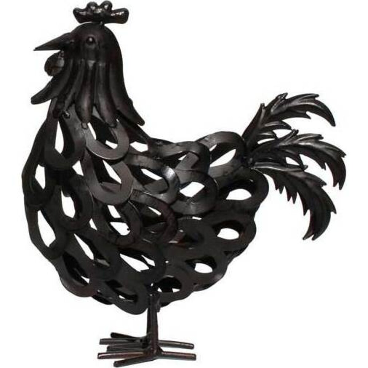Introducing the Black Noble Chicken. This charming piece of décor consists of a tall black chicken standing proud with his neatly coiffed tail and looped body. While many chicken-themed decorative accents are vibrant in colour, this strays from the norm and is perfect for the trendsetter who always opts for something a bit different. Thanks to its solid black colour, it can match well with almost any colour room in your home. This little guy is sure to receive a lot of compliments.
