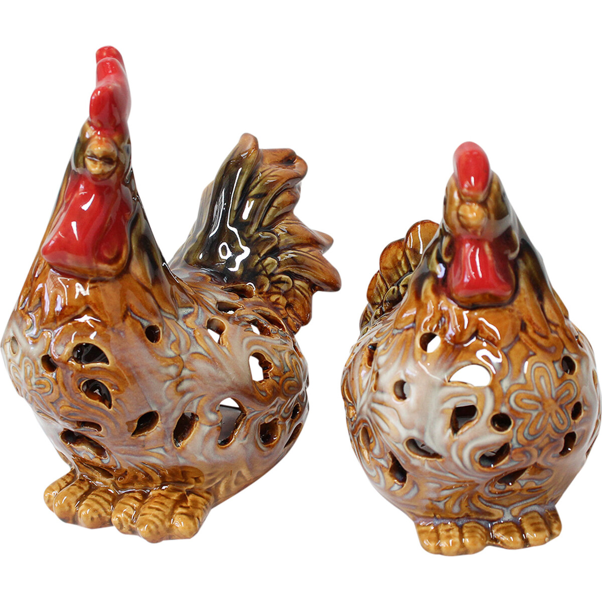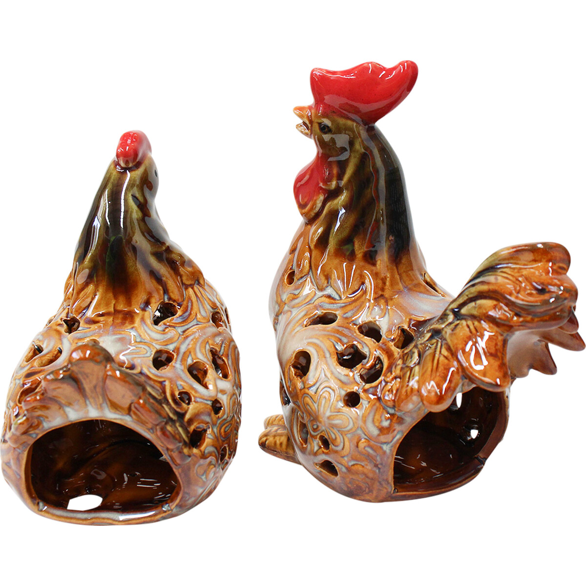 A great addition to your home or establishment decor. Combining a fantastic design with excellent quality, this item will make your home more elegant and cosy. Chicken & Rooster T-light features a varying shade of the red colour palette, tinted in antique bronze and gold. This is a decorative element for clients who desires something genuinely sophisticated. This design pays homage to a conventional social creature. The T-light holder is made wholly from ceramics by skilled artisans with refinement and finesse. This ceramic product is easy to maintain with a wipe with a clean damp cloth.