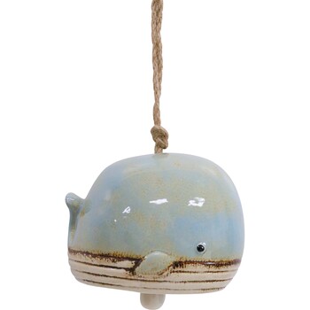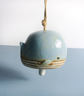 Chime Whale Our Chime Whale wind chime is just one of those pieces that speaks for itself. For one, it’s a whale with a pull chime - you get what you see, but when you get closer, it’s even better. The glossy, blue ceramic finish on the Chime Whale is so softly pigmented and understated, and that’s intentional - the Chime Whale isn’t one of those pieces that goes up on a wall or a shelf somewhere and stays there forever. It moves around - it’s so hand-painted that every Chime Whale wind chime is slightly different from the next. You’ll find slight paint deviations here and there - they’re all part of the Chime Whale’s character. The brown accent running along its mouth draws attention to those other little details - like the tail and its white pull chime. Ceramic means this piece makes an impression wherever you put it. As for where to put it? We like to say wherever works best. It really doesn’t matter where you put your Chime Whale as long as it’s kept indoors or under shelter - bathrooms, offices, bedrooms, hallways...the list goes on.