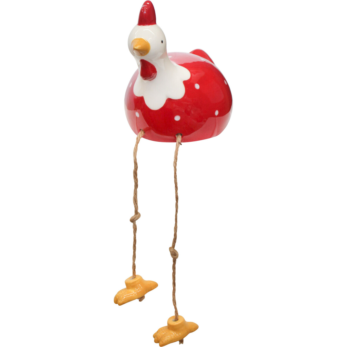 Did you know that chickens actually have pain receptors despite their feathery nature and can therefore feel pain and even distress? As surprising as that might seem, they are also immensely beautiful as recreated in the design of this adorable Chooken Resting Red. This chicken figurine is crafted in a portable sized dimension which measures 16 centimetres in length, 9.5 centimetres in width, and stands on the wobbly jute rope made legs at a height measuring 27 centimetres. It is predominantly red with touches of white.