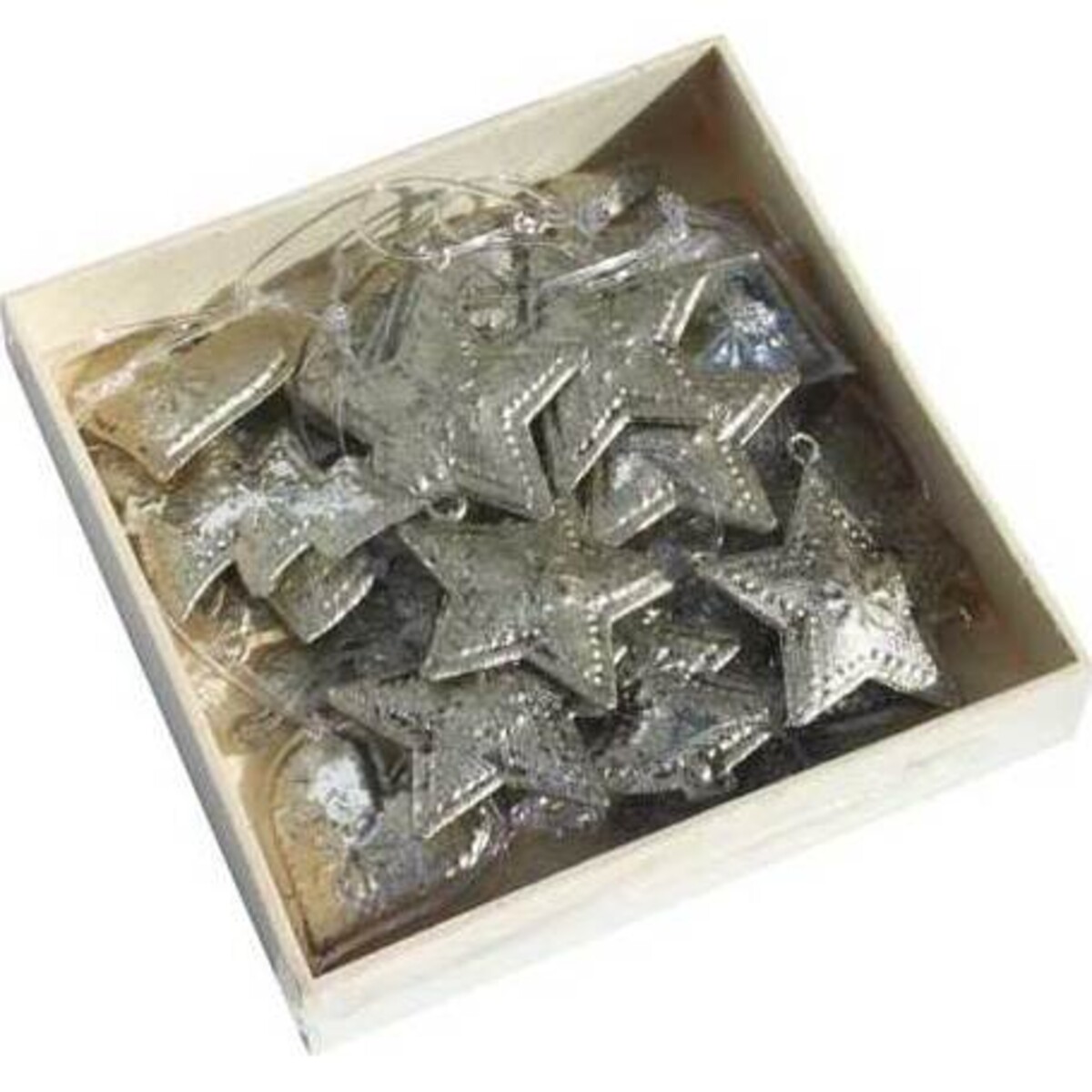 Add a downhome country feel to your Christmas celebration with a set of 24 Christmas Hangers in subdued tones of gold and silver. These vintage-looking metal hangers are offered in four shapes. Detailed designs on each hanger look as though they have been punched into the metal.