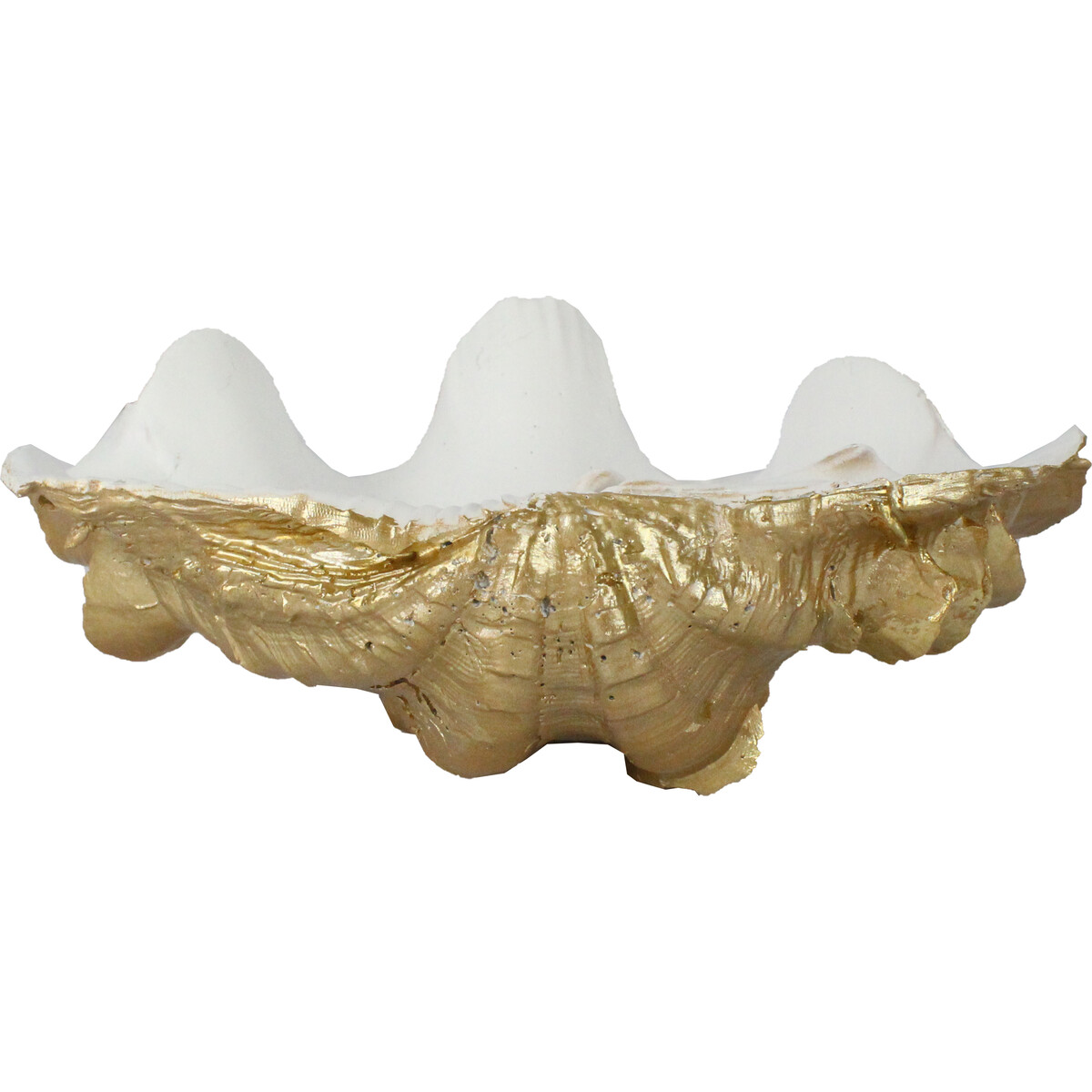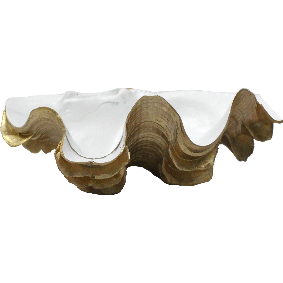Clam Shell White/ Gold Small is a thoughtful gift for shell collectors. It is also handy as a hostess gift, a great way of saying "Thank you for having me. I enjoyed every bit of my stay". Each of these clamshells is unique with dents and form peculiar to each of them. Clam Shell White/ Gold Small is then sculpted and finished with resin on the inside and plated with gold on the edges. This clamshell is guaranteed to breathe life into dull aesthetics because of its sleek polish. Likewise, it has a brilliant shine and glossy polish on the outside.