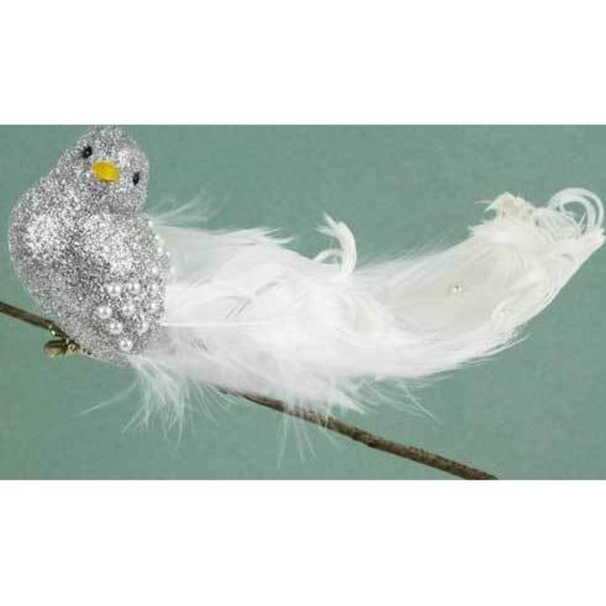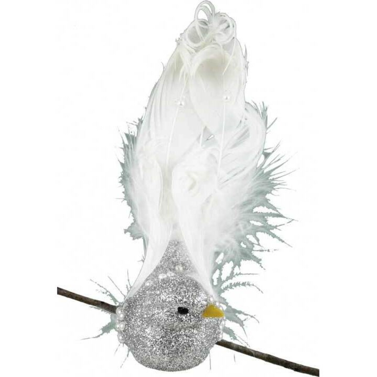 Be it baby showers, weddings or anniversaries - even children’s birthdays can have something magical thrown in and this silver , pearl and white embellished bird that seems to have dropped by from paradise - is just the right add on to that special decoration for the day. The large raised plume of the tail has curling feathers that are real and the body is created from poly foam and given this very special silver glittering finish. The wings again are made of real feather embellished at places with pearls. Silver is one such colour that instantly makes any place look special and festive and this 18 cm bird whether placed atop the cake, the tray with all the favours or the accompaniment atop the floral centrepiece - will make all else melt away with its magnificent presence.