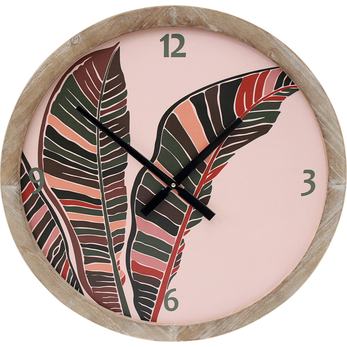 Hallmarking detailed leaf illustration in lovely pastel to deep vibrant shades. Clock Abstract Leaf is custom-made for homeowners who fancy a well-groomed, elegant product. Its Nature-inspired graphics accentuate the beauty and luxury of tropical heaven. Made by skilled craftsmen. Clock Abstract Leaf is a good product and flawless decorative pieces to add character to one's interior decor. Featuring (MDF) Medium Density Fibreboard with a country finish. The gallant leaf pattern is like a centrepiece, never getting unnoticed on the clock dial. The wooden clock dial is an extra later of MDF to beautify the product further. This approach attests to durability.