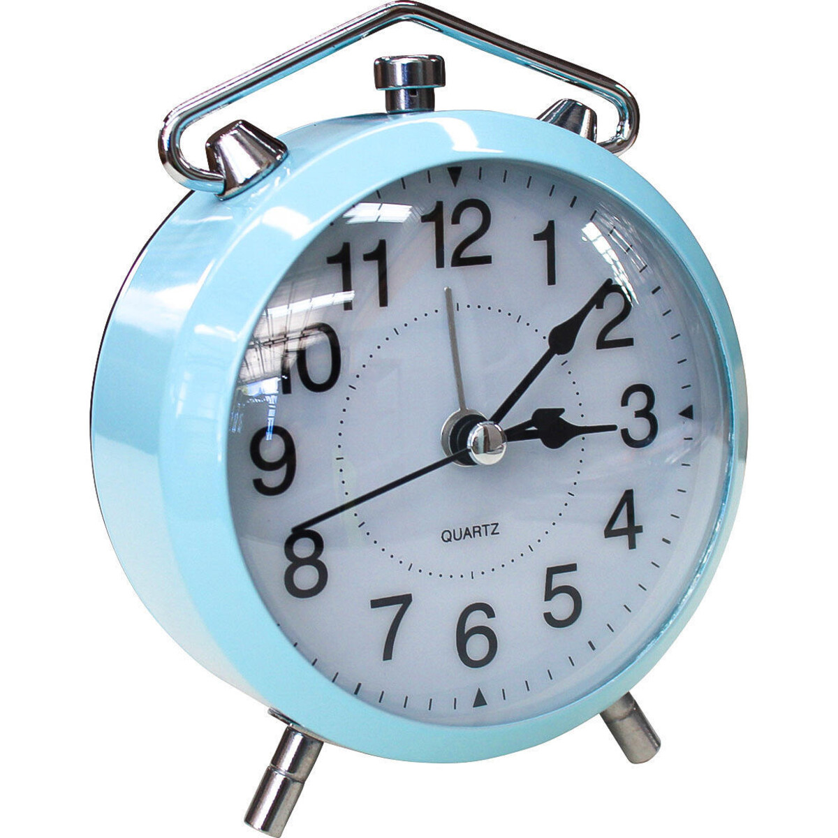 Made from metal and glass, this round-faced clock is antique in its styling as far as its exterior is concerned, the soft blue in an aqua shade lends it a certain modern flair. The solid metal design topped with hands in steel colour, adds to its pristine and utilitarian look. The clock is all of 9 cm in diameter with white face that ash the digits marked in black, affording it great visibility even from a distance. The clock stands elegantly on its two tiny slanted legs making a quiet statement, albeit a little vintage in its own unique way. A pretty little embellishment for the most studious looking of work desks, or the mantles, it’s got mechanical parts that have been upgraded to the latest and thus in keeping time, it shall be the finest option as well. Smooth round curved body, shiny chic metal parts adds to its chic and modern appeal on the other hand, thus making it as great for a modern setting also.