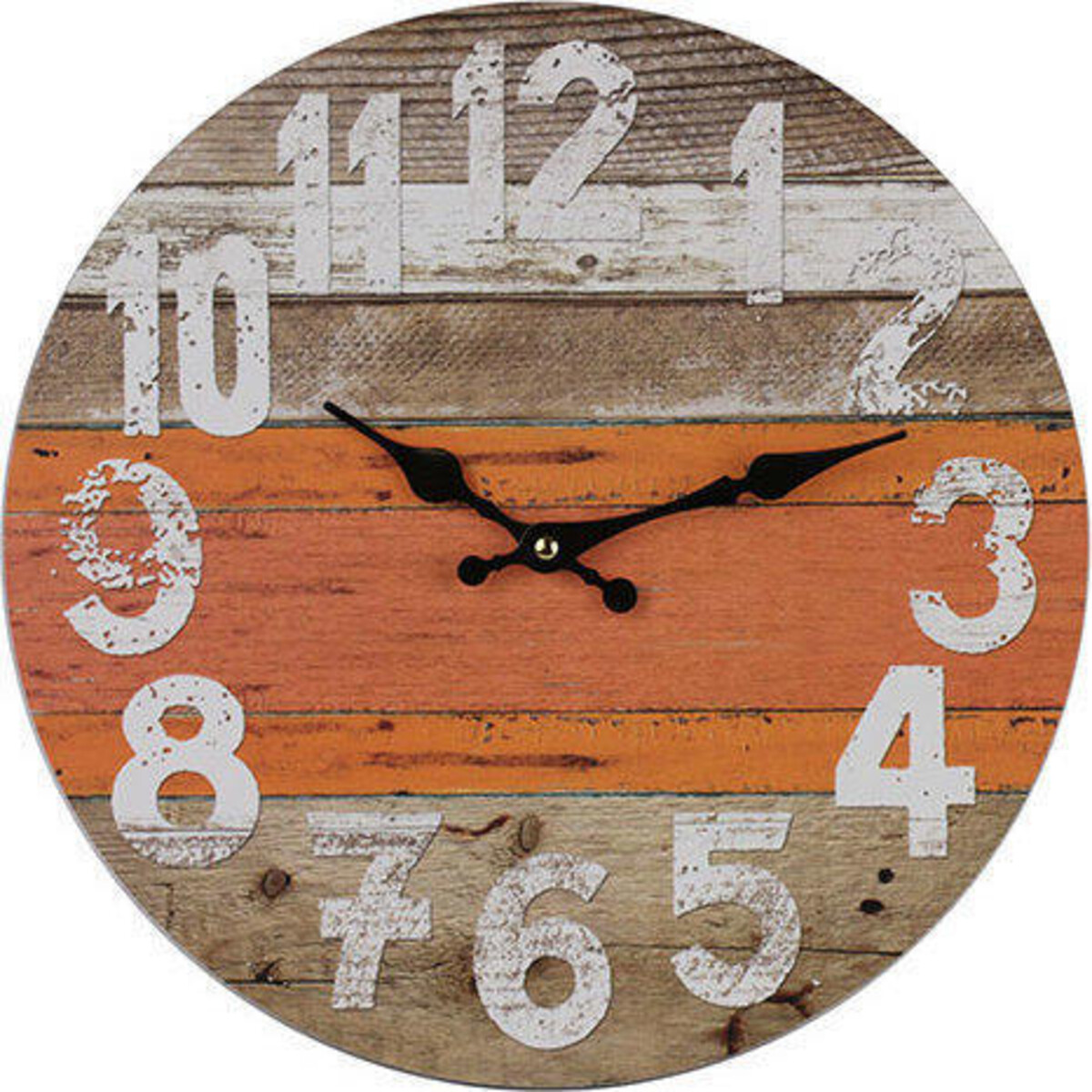 Clocks from Lavida come packed with such great features in terms of functionality, durability and style. Add that touch of shabby chic glamour where age and vintage translate to grace and beauty. Much like the weather beaten looks of this clock whose face is almost devoid of any brightness - as if the colours many eons back held a certain brightness, peeping out at places through its peeling and fading presence. The mechanism of course is stare of art which makes this clock perfect functionally. The peach - ochre and beige colours remind you of the seaside at sunset - the mild colours, the printed in white numbers and the unpretentious understated style is refreshingly very quaint and adds a touch of whimsy to the wall. The clock is all of 34 cm in dimeter making it compact enough for smallish spaces - niches and smaller rooms as well.