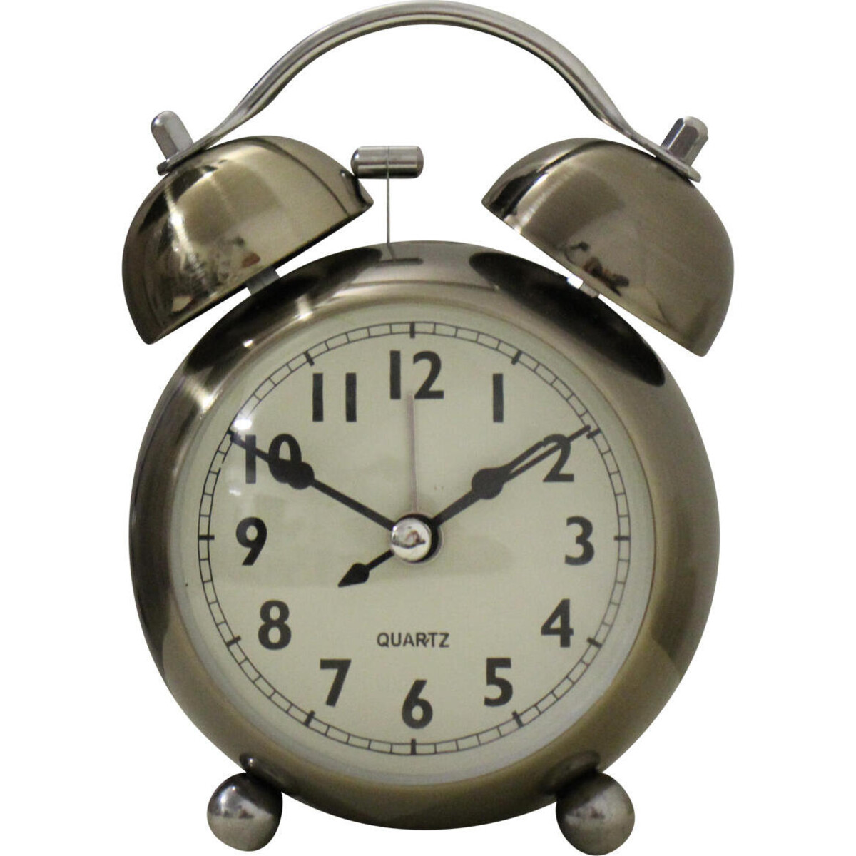 The accuracy of time keeping it will give you is from its more modern mechanism. Besides that, everything else in this clock is from the past - be it its solid metal body, its delightful metallic sounding alarm or its beautiful burnished coper colour. The clock mimics the typical alarm device that perhaps woke up the entire past generation stands on two tiny elegant legs that that slant ever so gently. The metal ringing sound, the delightful round shape of its metal made body, the simple white face printed in the most basic of manners, makes it the perfect industrial look alarm clock for your table too. Wake up to its sound each morning, or imply keep it on your kitchen mantle or you living room to check the accurate time it keeps. The battery run clock has black coloured arms that make the time visible in the clearest of ways. 13 cm in height and 8 cm in its diameter makes it compact and yet large enough to make a beautiful impression with its vintage kind of presence.
