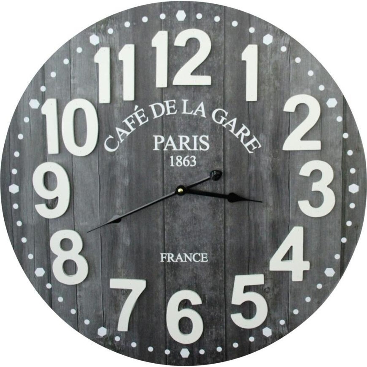 Chic French style on your wall spaces could make the room absorb the same vibes. Here is a grye coloured wall clock whose antiquity comes not just from its quaint French associations and the print that makes it all the more obvious but also from the fact that it has a certain understated modernity as if its style is as timeless as time keeping is. For all who love simple uncluttered design, the round clock with its very basic styling will lend the wall a classic vintage look.