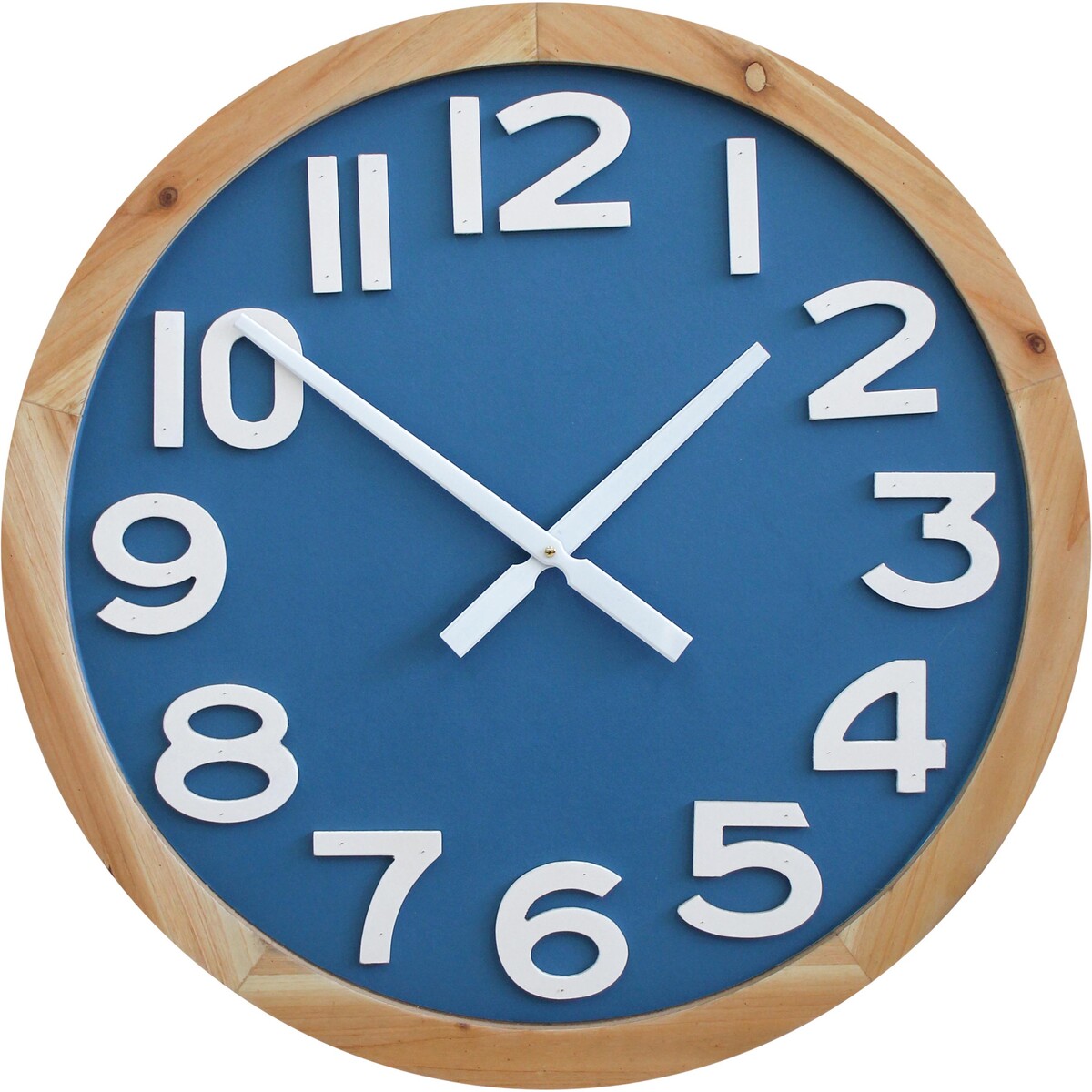 Bring the brightness of blue r to your walls and add this modern and contemporary looking clock to your spaces to fill yup blank wall spaces and of course enjoy the functional accuracy it will give you when it comes to time keeping. Made from MDF, the blue faced clocks has a dial size of 60 cm , making it suitable for all kinds of large wall spaces. The light wood coloured frame adds a delicate contrast, making t very colonial and nautical in appearance. Battery run clocks such as tis are an imperative for modern homes and spaces and makes your larger wall spaces acquire a more of a centering they need. The modern styling of the numbers on the face make it easy to see time from a distance.
