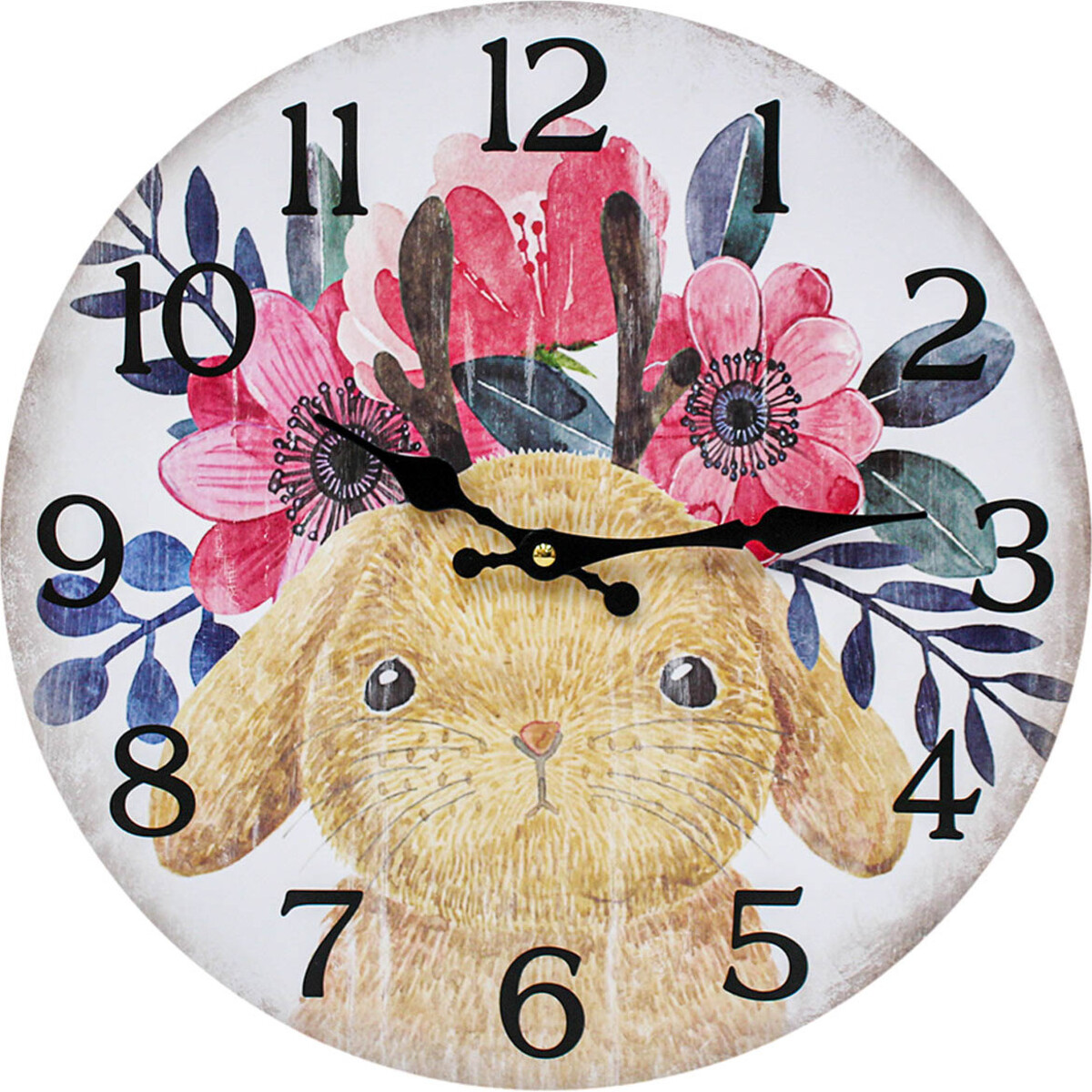 With a flat and dense surface, Clock Coco Rabbit is a simple way to bring style and personality to the children's room. The rainbow coloured piece features a cute bunny and chromatic petals. This artwork ignites children's imagination. A timepiece is one of the showpieces that guests caught sight of in the home. Setting-up the wall clock fittingly at eye level, helps to draw eyes from all corners of the room. Clock Coco Rabbit is a beautiful accent in a wall display. Avalanche of children's artworks can be displayed in style with the timepiece as the centre of attraction. An MDF (Medium Density Fibreboard) product is sturdy and durable.