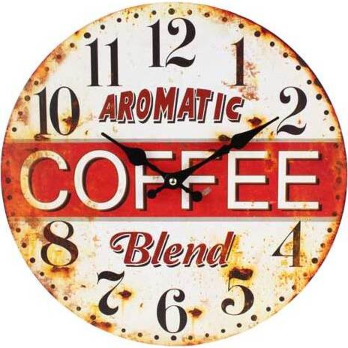 Truly a blend of modern times when drinking coffee was as liberating as wearing what one pleased, this tin sign inspired clock face has all that it takes to get one into the mood for not just a hot cup of coffee but also the feeling of relaxation that accompanies this cup of joy. Each time one looks at the clock one of reminded of the good times that accompanies it. The look is truly vintage with the distressed metal and peeling paint effect doing its work on the overall impact of the piece. The mechanics of the clock is in perfect shape and will keep precision time. The choice of font, the rust patches and the look of the past has been splendidly captured .the numbers and the lettering too looks so much in tune with the look of the times.