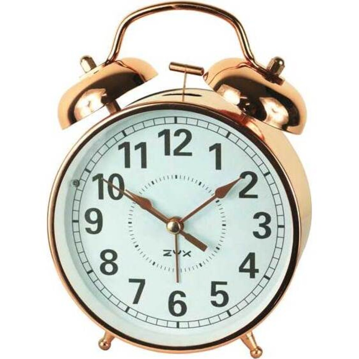 About 16 cm in height, the chimes clearly visible, the round face with its numerals darkly printed and well defined, and the shining copper body a delight .This is one of those clocks that will make all the difference to any space not just with its functionality but with its unique good looks. Standing of two legs that are slightly slanted and the top with small arched handle to make it easy to carry and place on any table or mantelshelf-this is an elegant clock that would look wonderful along with antiques and curios that reflect the past. The clock is perfect in its functionality as it comes with battery operated features much in keeping with the latest in time keeping. Expect a great many compliments wherever it may be placed ?be it the children's study table, your bedside or even the mantelshelf.  It will with its unique good los draw a great deal of attention.