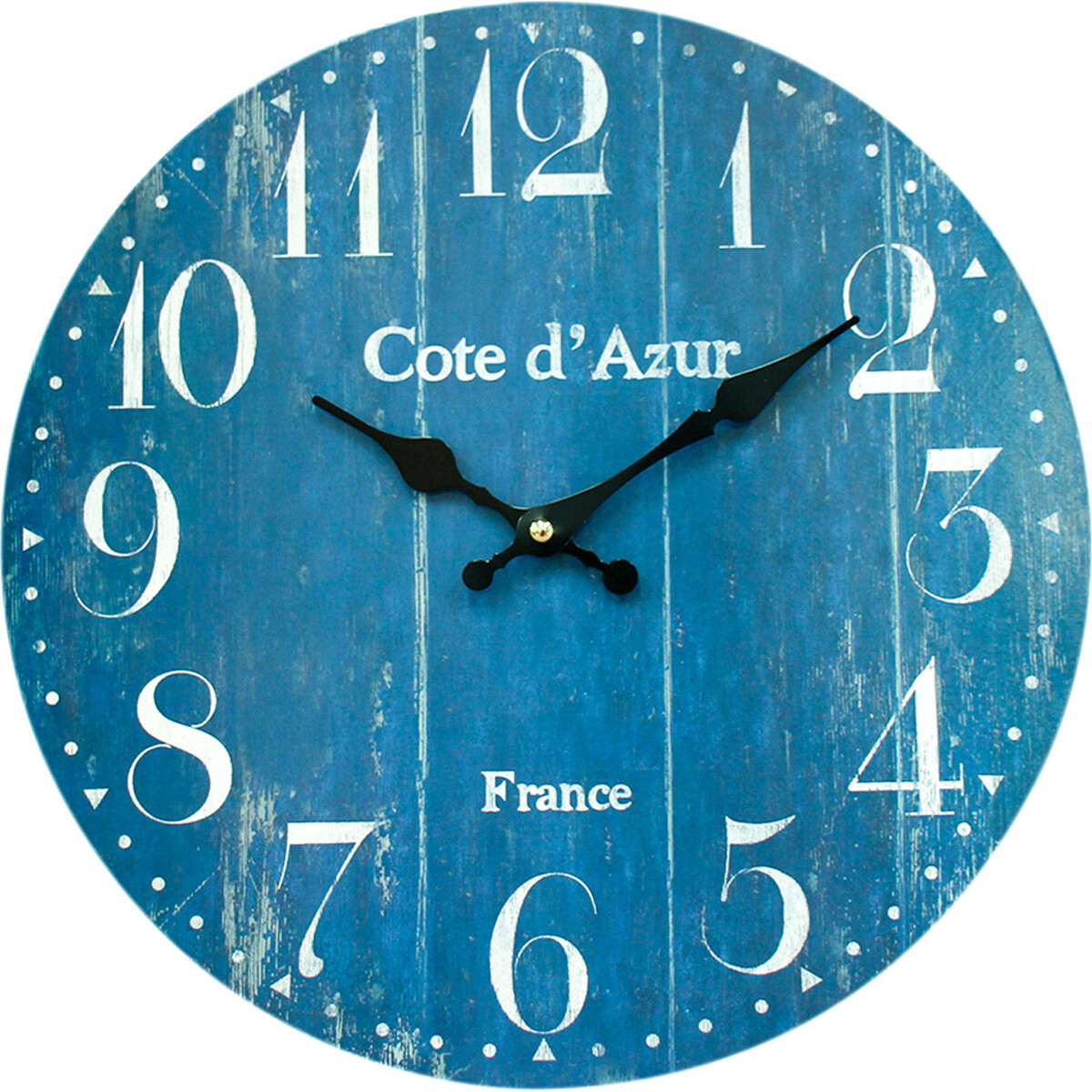 The seemingly simple looking Clock Cote Azur 34cm draws its motif from the sea which is why it is painted in an azure blue colour. The clock symbolises, features and presents a motif of showing just how time and tide could change the outlook of things. This is why it chooses a weathered azure blue colour to show the weathering abilities of the sea. There is an inscribed French wording which reads "Cote d' Azur" at the top part of the round clock while directly opposite that, on the 6th stroke of the clock is the word "France". The wording is a reference to "the coast of France". This is why the sea themed clock would be a quick sell especially around coastal regions. It is made of quality MDF and there are 12 in a carton.