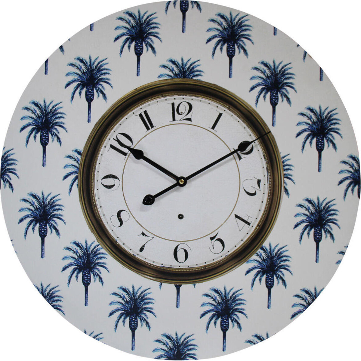 The classic design will seamlessly match your current decor and will look good in any coastal or tropical themed home. The dial has a white background with easy to read numbers that are painted black as are the minute and hour hands. Exotic date palm motifs adorn the entire circumference of the dial in navy blue shades that beautifully complement the white background and black numerals. Hang it on any bare wall to have the room bursting with tropical charm and transporting you to the sunny islands across the sea while at the comfort of your home or office!