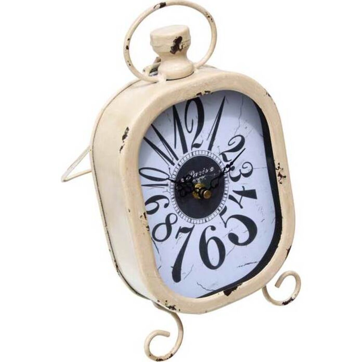 Clock DeGas Cream is a one - of - a - kind clock that measures 16x29x7 cm and is crafted using metal and glass components. It is rectangular in form and has a hook at the top for suspending it on a wall. Other coiled hooks are present at the bottom for beauty along with facilitating its setup on diverse kinds of surfaces. The centre section comprises of glass inside which are large and bold numbers designating the various hours of a clock. The minute and hour hands are held in position and controlled by a metallic device at the centre around which is a circular, black dot, with the outer background being white.