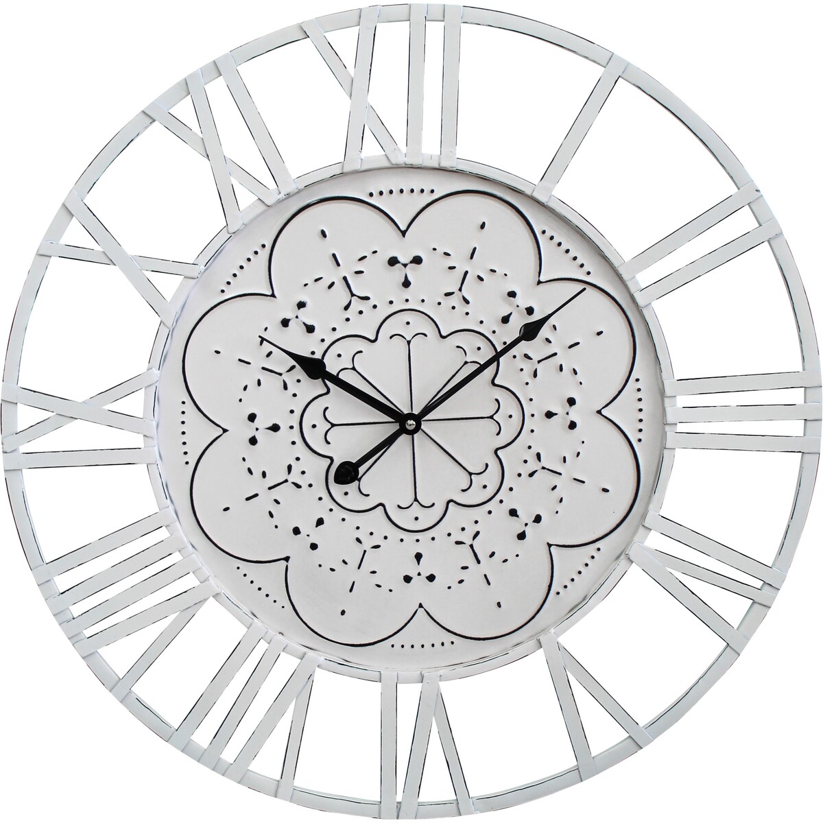 The Clock Eastside adds a touch of period drama with its white face, antique numbering and a charming vintage appeal. Clock such as this one come with the promise of adding more to your décor, while its 60 cm diameter size makes large wall spaces more interesting, aligning them with your décor much more. This one comes ready to hang on the wall. The black and white colour palette adds more charm lending it a certain antique vibe. The white distressed metal finish frame which has the numerals adds to its unique design. Sure to go well with a vintage heritage theme, as much as with a colonial setting. A modern time piece in terms of the technology and functional accuracy but designed to fit like a glove with your modern vintage look setting.