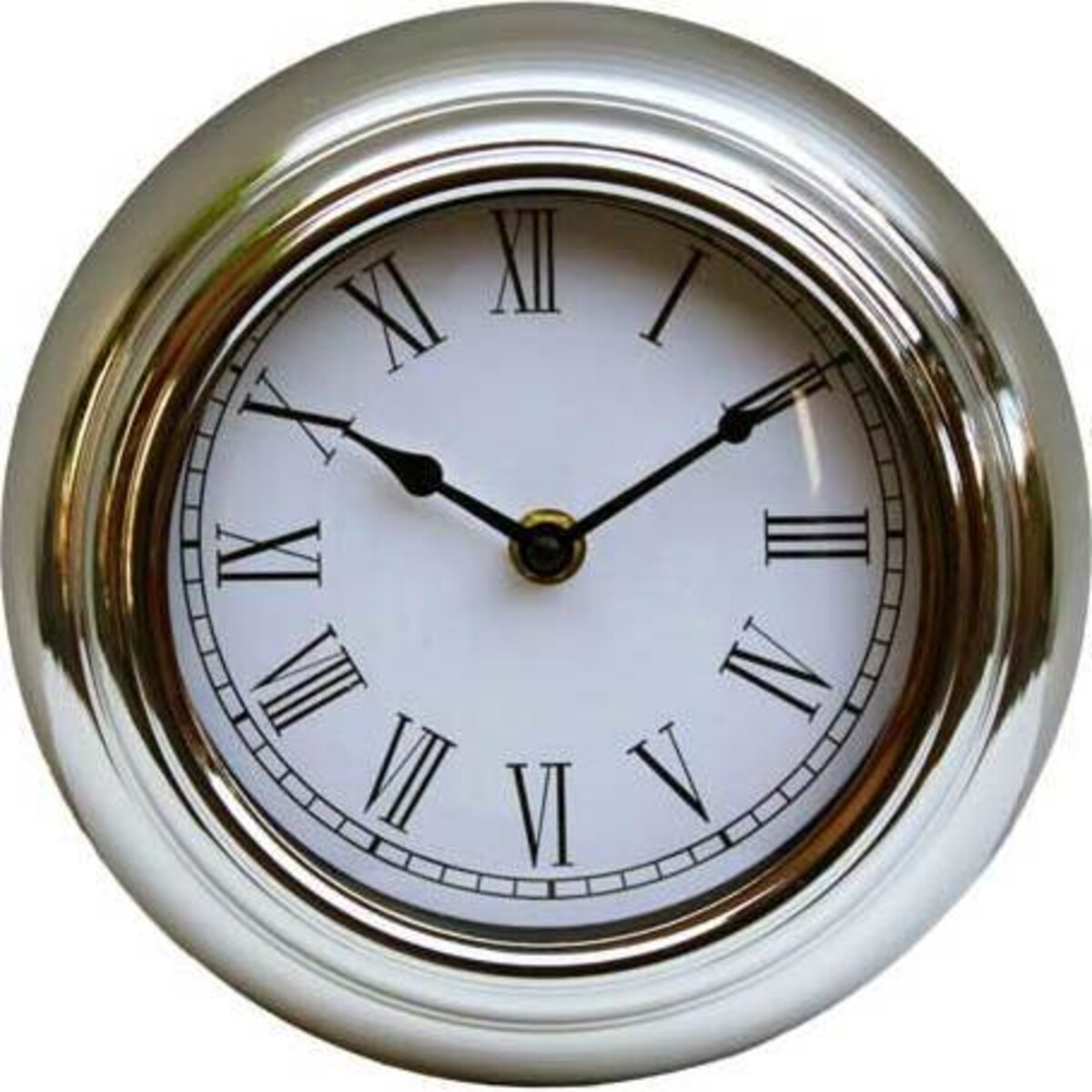 The clock has a silver metallic border running around it giving a regal feel to the clock. The interior of the clock is white with the time written in Roman Numerals in black. The shine and shimmer brings a little sparkle to a dull room. Since the colour of the clock is neutral, it blends in with all types and colours of furniture, wall papers, paint colours etc. It is a small clock and can be placed in areas of formal sitting, halls, living rooms, dining rooms, master bedrooms, doorways and near entrances. They can be particularly put in those places where space does not permit keeping a large clock. Reasonably priced, they are worth the money spent on it.