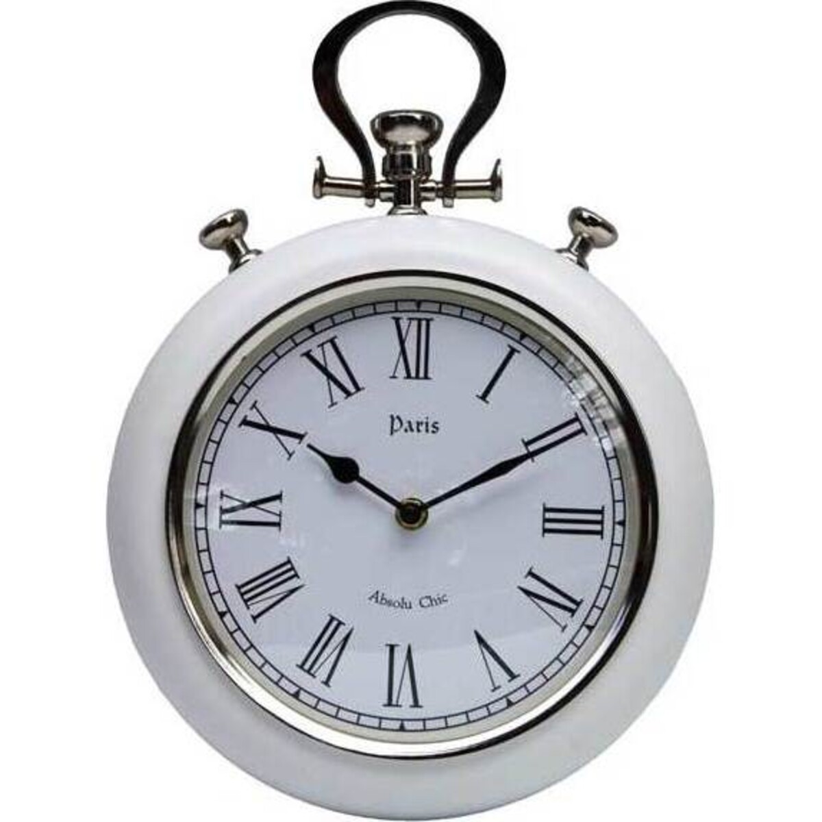 The Fob clock is one such clock that performs dual functions ? telling the time and also beautifying the home at the same time. The clock measures 26x37x9 cm. It is a round clock with an elegant, white border. The dial of the clock is white with numbers inscribed in black roman numerals. The clock though small in size is chic, classy and elegant. It can be hung in both formal and informal settings like living room, halls, bedrooms, dining rooms and even kitchens. Since the size is small, it can be hung in areas where other large things cannot be placed. Therefore, the beauty of this clock lies in its exquisite combination of colours that is white and silver and its sophisticated design.