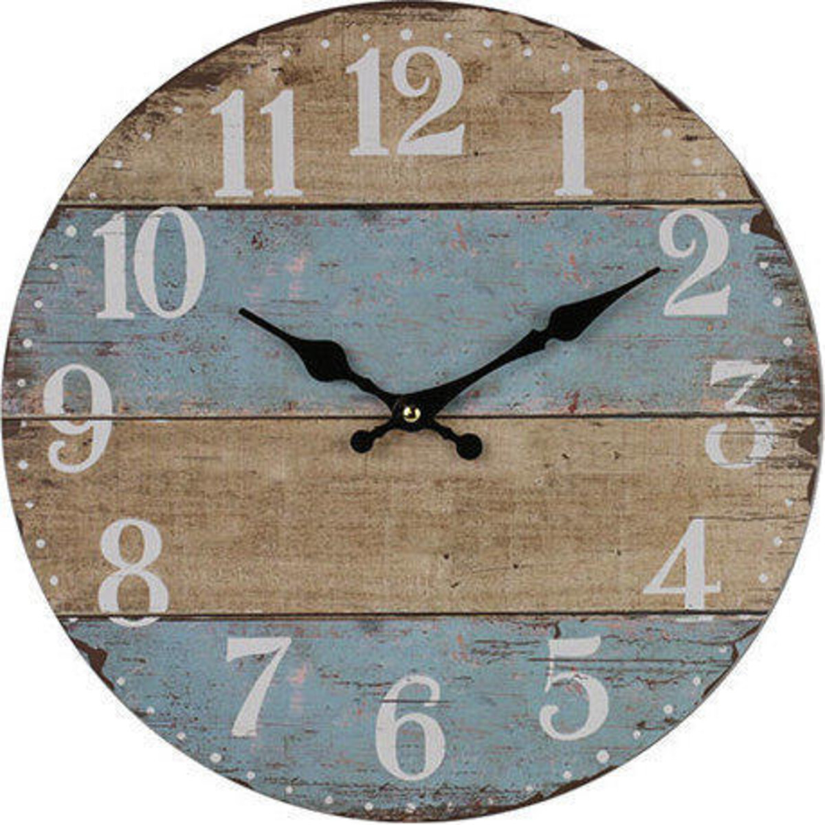 Clocks are part of the décor as much as any other aspect of your hone and when the exquisite design that is French blends in with a perfect colour choice and size, the result is such a wonderful accent. The subtle blue colours -the shades of blue and beige blend in rather well. The shabby chic feel created on MDF can only be called vintage. Lend your wall not just something of a useful functional article, but the look of charm that things shabby vintage bring with it The clock is 34 cm in dimeter and can be used on a small wall space. Maybe the placement could be done in accordance with other similar look accents that hep develop such a theme. The perfect finish given to the clock, makes it a wonderful décor accent. It shall of course give perfect time ensuring that you always keeping your appointments. Place it ins paces that need a certain kind of centring-or a focal point to build on. The body is crafted from MDF and the mechanism tuns on battery.