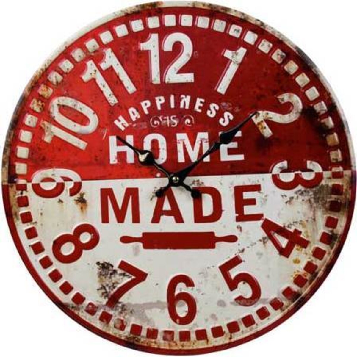 The bright and sunny face of the clock is painted red and white - the combination that makes even a dull day seem most lively. The clock comes with a similar distressed paint effect that is seen in many clocks from Lavida but in this case there is something modern yet vintage in the way the message of a happy home seems to be conveyed. The face reads - éHappiness Home Made' and the numbering is very modern style unlike the more ornate kind with Roman numerals. The hands of the clock are quite prominent and will show the time very clearly even from a distance. The very antique look created in the clock becomes its USP - the fact that it is period piece makes it all the more charming and when placed in any part of the interior it is bound to draw a great deal of attention. The rust marks, the peeling paint and the deep character etched all across its face are simply worth owning.