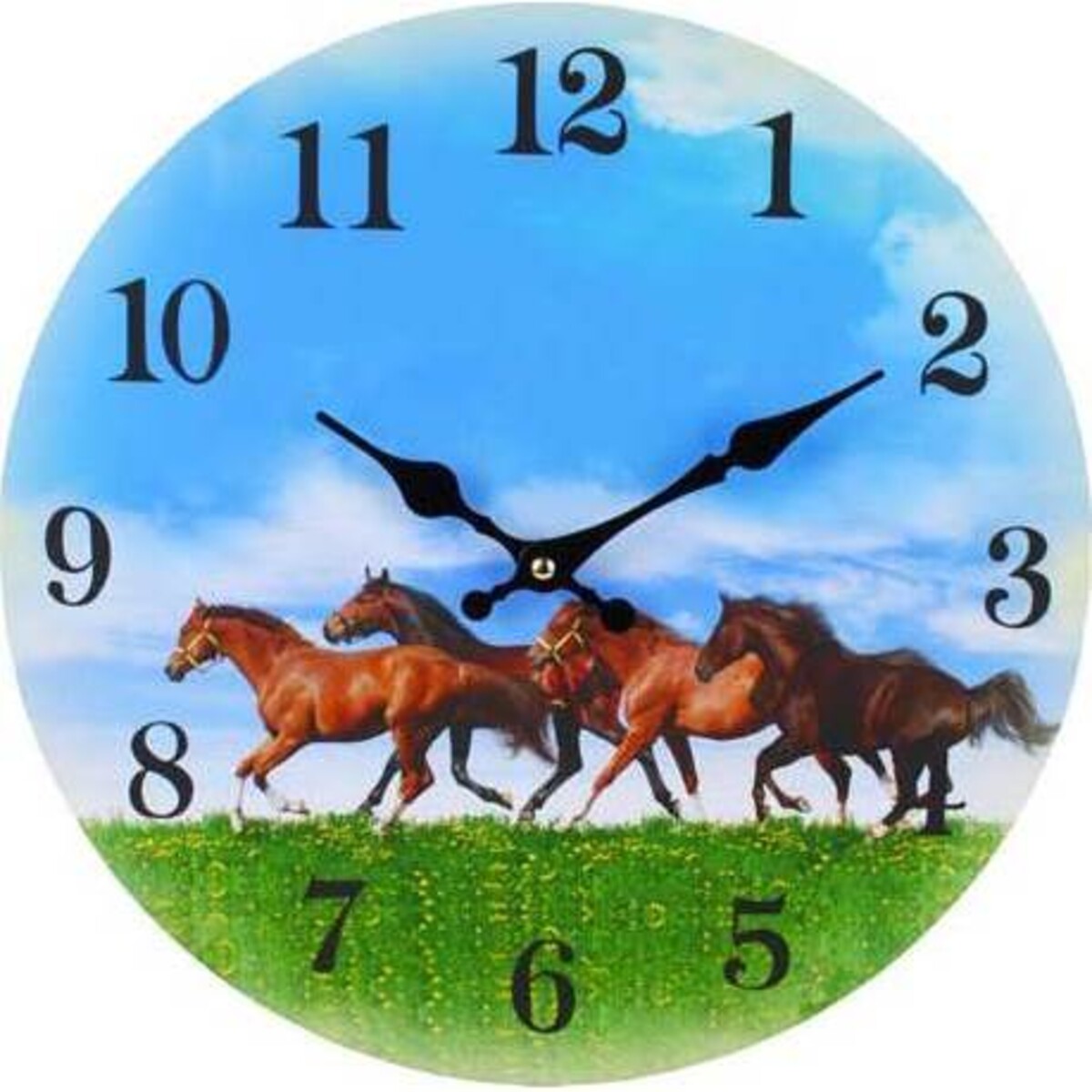 Lavida has always displayed a great concern for creating decor pieces that are smart, stylish and what modern and contemporary homes are seeking - practical good looks and functionality. This cock has a feel of great art as it captures a lovely picture and places it on the face of the clock. Each time one sees the time, you are reminded of the beauty that this picture wants to convey - of the meadows, running horses and the freshness of the outdoors. A simple utility article has thus been raised to something more - a piece of decor, a great eye candy - a colour pop on the walls that will automatically spread its energy and beauty all around. The numbers are the hands of th clock are sharply defined thus making their visibility rather clear.