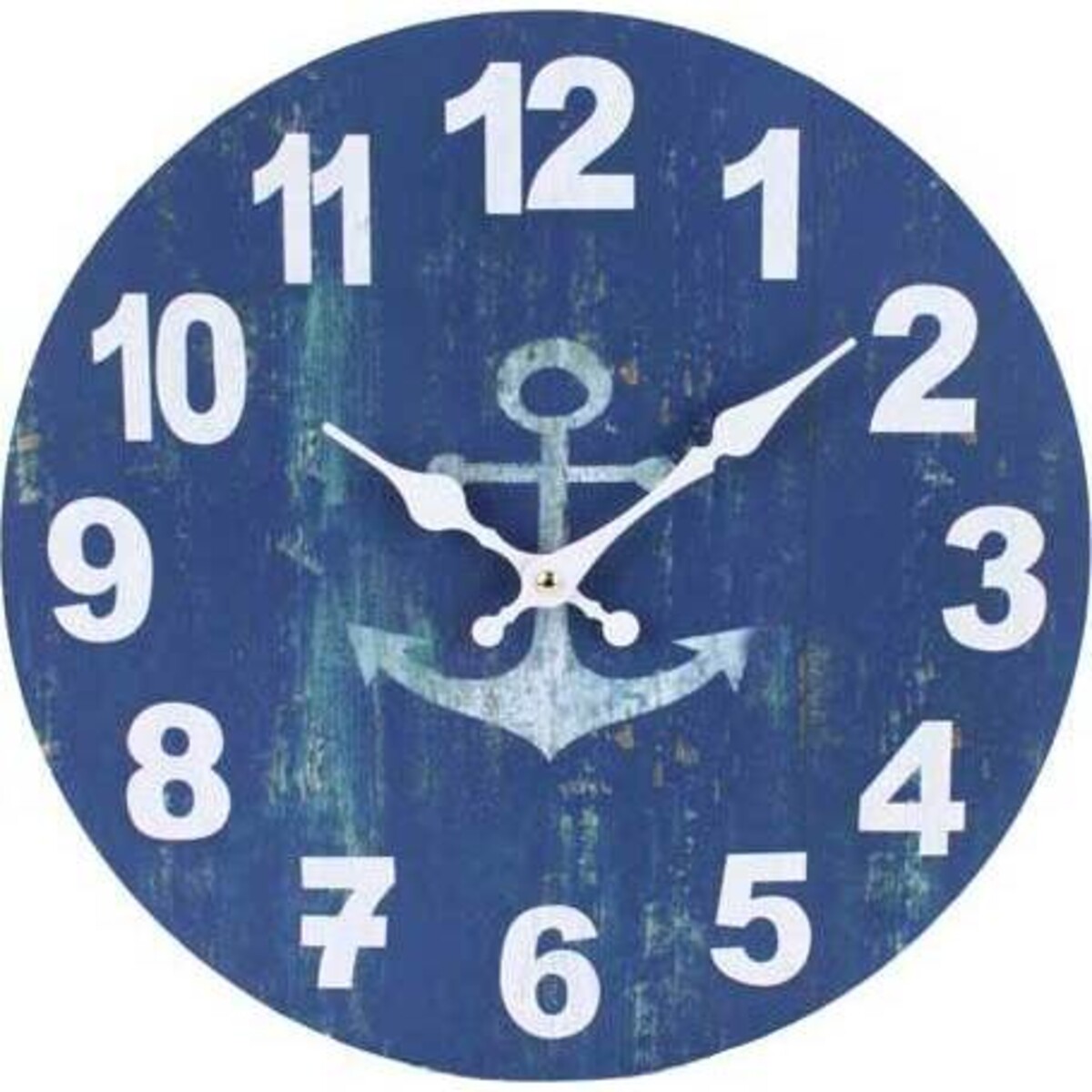 A certain amount of adventure and robustness is built around the nautical theme and this indigo clock with its bright and bold colouring as well as the motif of the anchor says it all. Made to keep precise time the clock has all that it takes to make it a great time keeper - the numbering is clear, the hands are visible even from a distance and there is no issue of glare as the time then can be seen from a distance as well. The white and blue combination looks refreshing and the clock will look great in spaces that have a ocean or aqua theme in them. Great for the children’s room or the study where so e ore colour is always welcome. Interesting details like the rubbed paint effect and the anchor at the focal point give this clock its appeal.