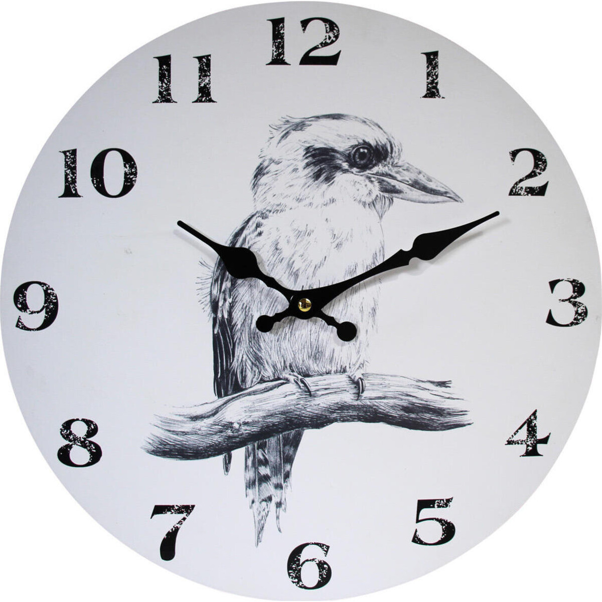 Bring in some nature and charm to the wall of the hallway, bedroom, guestroom or kitchen with this elegant timepiece or even hang it out on the porch or garden area. Search your watch, phone or laptop no more to tell the time - just look up and glance at this clock and you will be lost staring at the life-like drawing of the bird! The detailed Kookaburra illustration on a plain white clock dial with distressed black numerals gives it a minimalist look that is also sophisticated, stylish and cute at the same time.