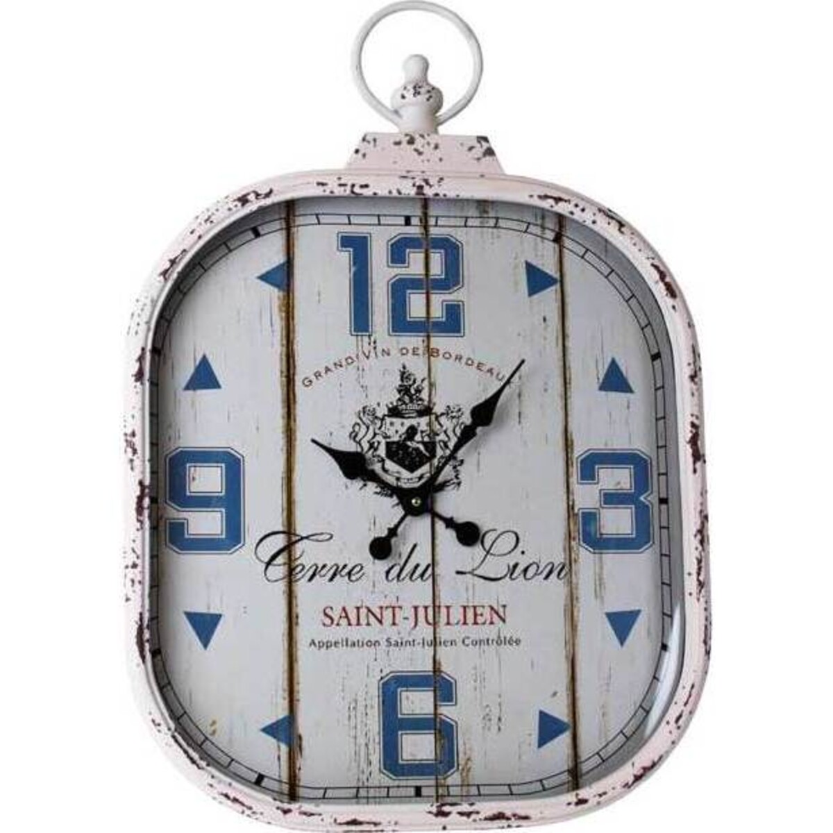 Oblong in shape - about 67 cm in height and 45 cm in width, this clock packs in regal good looks that will blend in easily with decor styles that are period or vintage feel. The clock comes with a deep - set rim and an outer rim moulded from metal and given a rusty feel on the inside to build in the antiquated looks. The Words - Grande Vin De Bordeaux instantly transports one to wine country, pubs and chateaux of the south of France and the inimitable romance of the vineyards and their many tales. The pretty cornflower blue in the numbers look faded and dulled with time and is carefully created to make it look vintage. The upper rim has this little slot éa ring which perhaps allows one to hang the clock if need be.