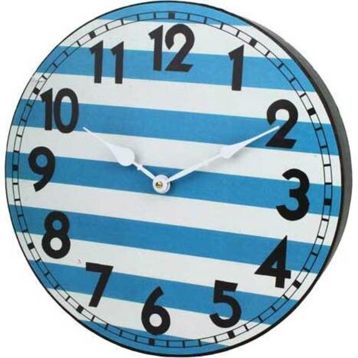 Introducing the Small Stripe Marine Clock from Lavida. These lovely clocks feature blue and white horizontal stripes, large, bold, black numbers, white hands, and a black border. Even if you're not decking out your home in nautical décor, these clocks are a fabulous way to add a touch of colour in a noticeable yet subtle way. Considering their fun pattern, they would even be a great addition for kids' rooms. Place these clocks all around your home in any room that could benefit from a little brightening.