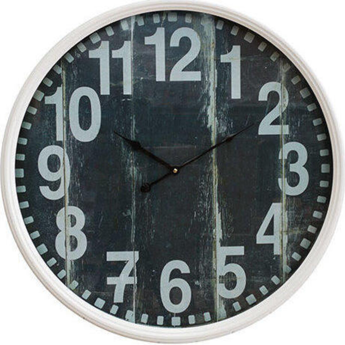 Made of metal and glass covering its round 60 mc diameter face - makes this a sturdy piece for any kind of setting - home or otherwise. The superbly fashioned cloak will keep precision timing and ensure you don't miss an appointment. The face is given the appearance of a weathered board in deep navy colour. The streaks of white supposedly age marks add more beauty to its rustic charm. The white numbers contracts vividly to the dark backdrop - the hands in black clearly visible and the white metal rim encircling the glass face adds more class and sturdiness to its structure. The clock would look fabulous gracing a wall above the fireplace or above the children's study table - or even acting like a space filler on long and lonely walls .Any space that needs a touch of ageless charm of classic designs would be a glad at this inclusion. The very colour and the rusticity of the clock and the obvious use of white in the numbering makes it a classic means to add a touch of marine look to your walls. The navy and white combination - the touch of ageing added to it and the large 60 cm diameter is a presence that will be appreciated for its boldness a such for its undertested dignity.