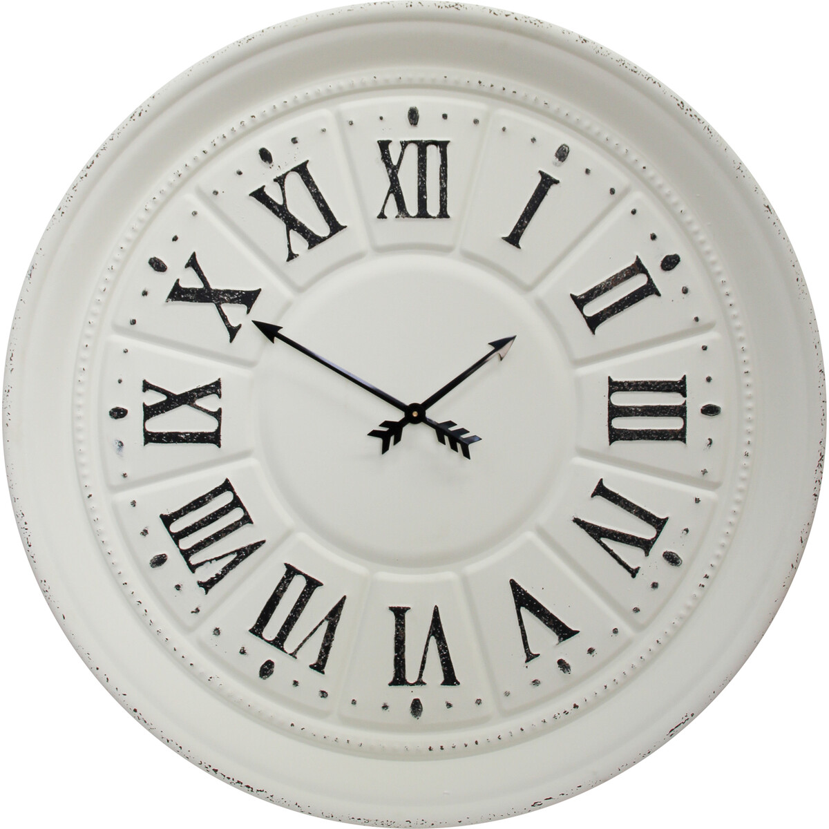 If you have always loved things shabby chic and modern vintage ,here is your chance to add something truly beautiful to your collection. Place this clock on any wall and benefit from its antique appeal built in through its Roman Numerals, the vintage frame, and the arrow style hands. The 97 cm diameter is a large face that in some ways makes its effect truly impactful and dramatic enough to change the look of the space. The visually pleasing effect of the clock Orlo also comes from the fact that the colour of the frame and that of the face of the clock are subtly vintage in effect. The typical Roman numerals too add a similar hint of age. The clock will grace the wall with this effect and help support a classic look in your home. Could be used as much in the living room at home as well as in more formal settings. Add the charm of a classic clock that functions with great modern precision keeping time to much accuracy while at the same time making your d?ɩcor come alive with more vintage charm.