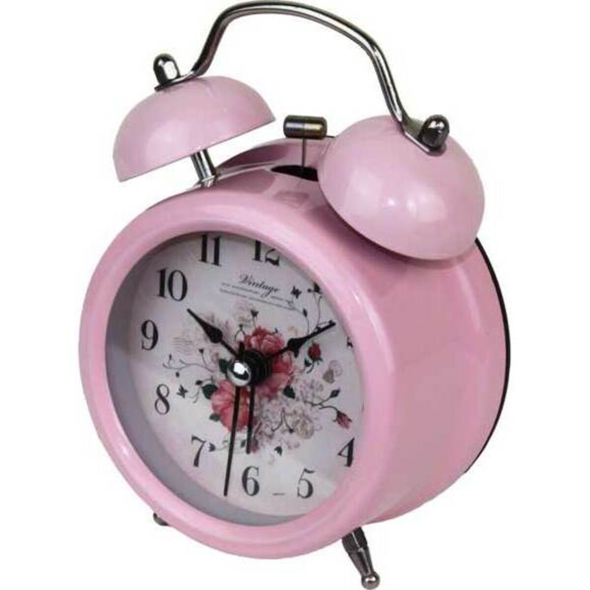 Clock Pale Pink Floral is a unique kind of time - keeping gadget that measures 8x13x5 cm. Metal is used to make its external body that comprises of a round, central section with two bells on the top and looped together with a shining metallic piece. In - between the bells is a knob for adjusting time and the entire framework sits upon two legs protruding at the bottom. The front face is white and covered with glass, with internal time - elements like hour - marks and ticking - hands being black. Owners of homes can place this gadget anywhere they like, whether within bedrooms, living rooms, dining areas or other places. The pink colour of this product makes it a delightful gift item for a lady during a notable occasion.
