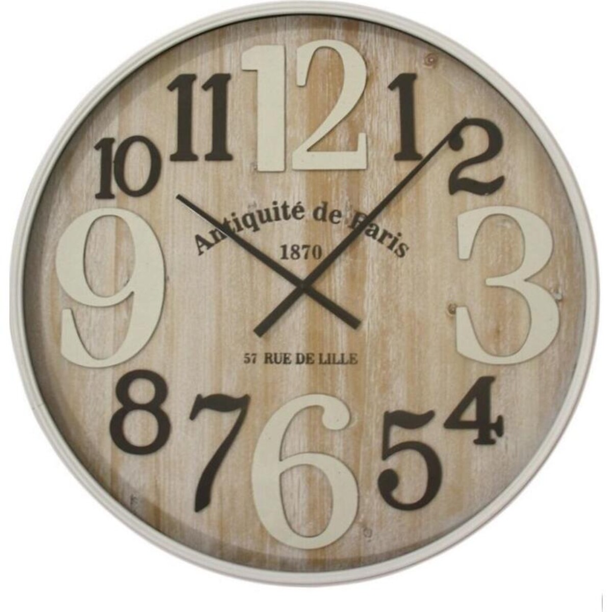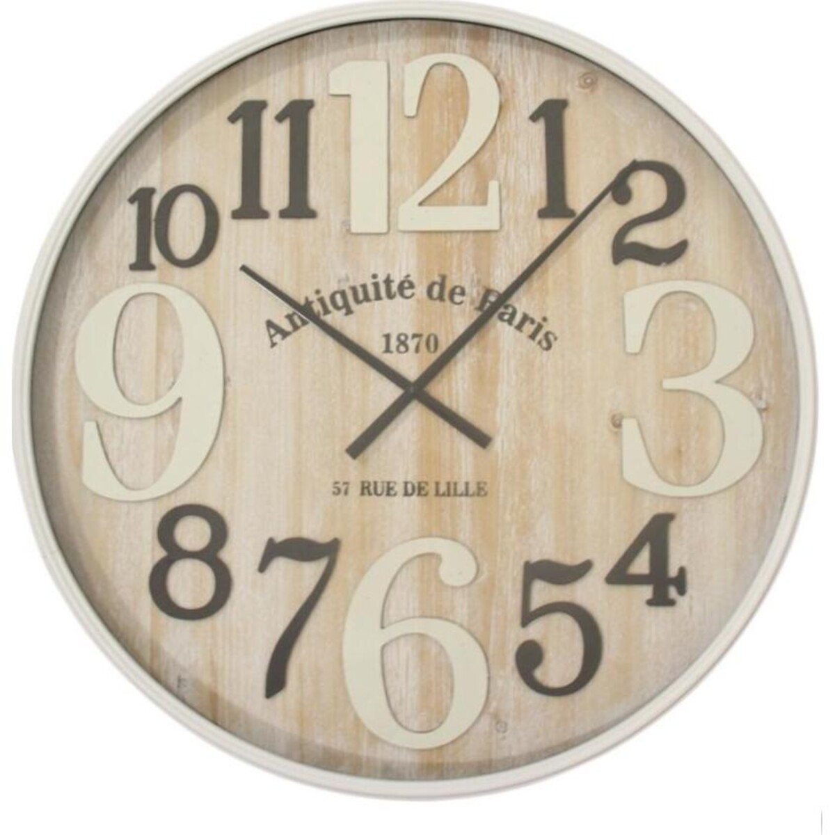 Subtle in colour impact and robust in size makes it a great fit in your interiors. The clock is round with numerals that make sits design achieve the uniqueness that you would love for your clock to possess. The large face of the clock is visible even from a distance and at a dimeter of 74 cm it is bound to be one of the more prominent of accents on your wall. Place it where you wish to draw attention to the very French feel or a vintage hint in your interiors. The clock is a lovely beige with numbers in black and white. The hands are spade like in black and thus makes the seeing of time rather easy. A white coloured rim defines its face further. The varying sizes of the numbers lends it its quirk-a design detail that adds character and a certain cheerful casualness that looks best in informal relaxed spaces. Accurate time keeping and perfect synchronisation makes it a wonderful addition to any home. The print in black which makes its look all the more antique is of course the cheery on the pie-it states its antiquity quite plainly right across-hinting of course at its very Parisian roots. Add this to your living room or the bedroom and soften the look the French way.
