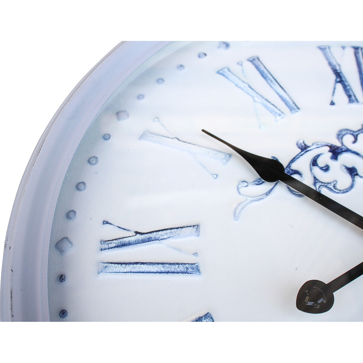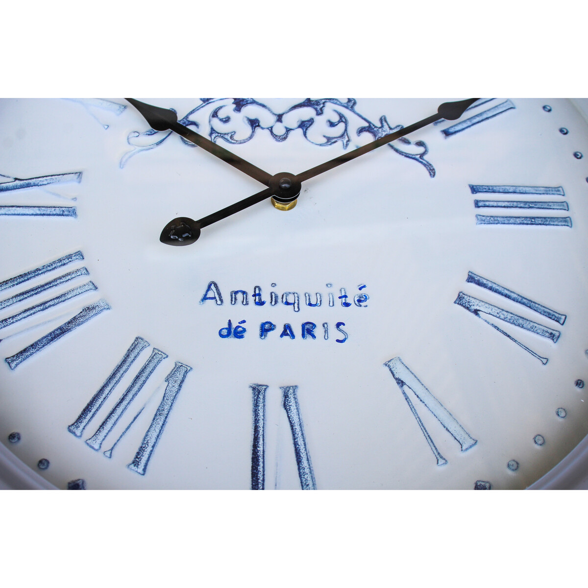 The stunning white and grey colour combination is the kind that will instantly go well with all kinds of spaces that love the look of things traditional and antique, made of solid metal and given a solid rim that defines its face - this clock is about 40 cm in dimeter making it a great choice for rooms and walls that are small to medium in size and need that much needed centring, the round face is rimmed in grey metal with the face in off white and numerals in grey. The subtle play of two soft colour does not take way anything from the visibility of the time. Even from a distance the clearly formed Roman Numerals can be seen. Thus, be it behind the study table, the console ort the sideboard this subtly coloured clock will make its wonderful impression in a gentle and elegant manner. A perfect pick for your office as well, as the understated colours and simple design makes it a fit for such environs too.