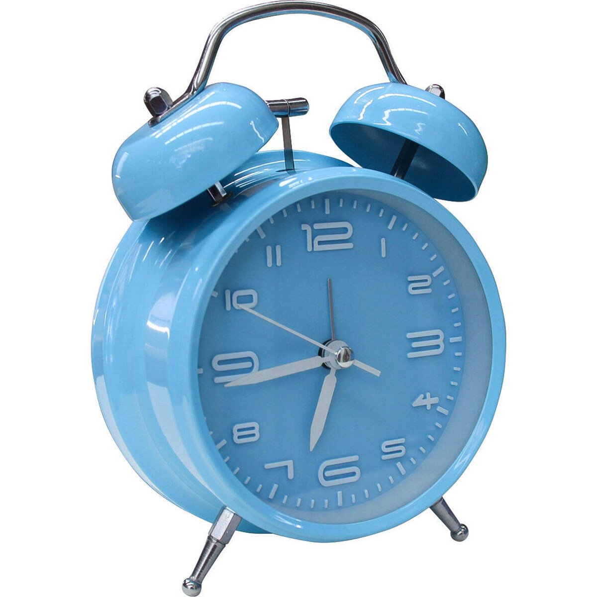 Clocks are an essential part of any space as in the busy times we live in , there is always the need to be on top of schedules and getting us on the right time track are these hardworking machines, bringing the same precision timing to your spaces is a vintage style twin bell clock that is throw back of a vintage design recreated in a modern avatar. Delightfully coloured in blue, the metal body is sturdy, standing on toe slant legs that will hold its balance. The battery-operated clock has a 16 cm height with a 11 cm dimeter face. The numerals on the face are printed in white, blue being the background. This allows the visibility to eb even sharper. Simple style in numbers adds to its modern appeal. A handle on top makes it easy to place it in any spot of our choice.
