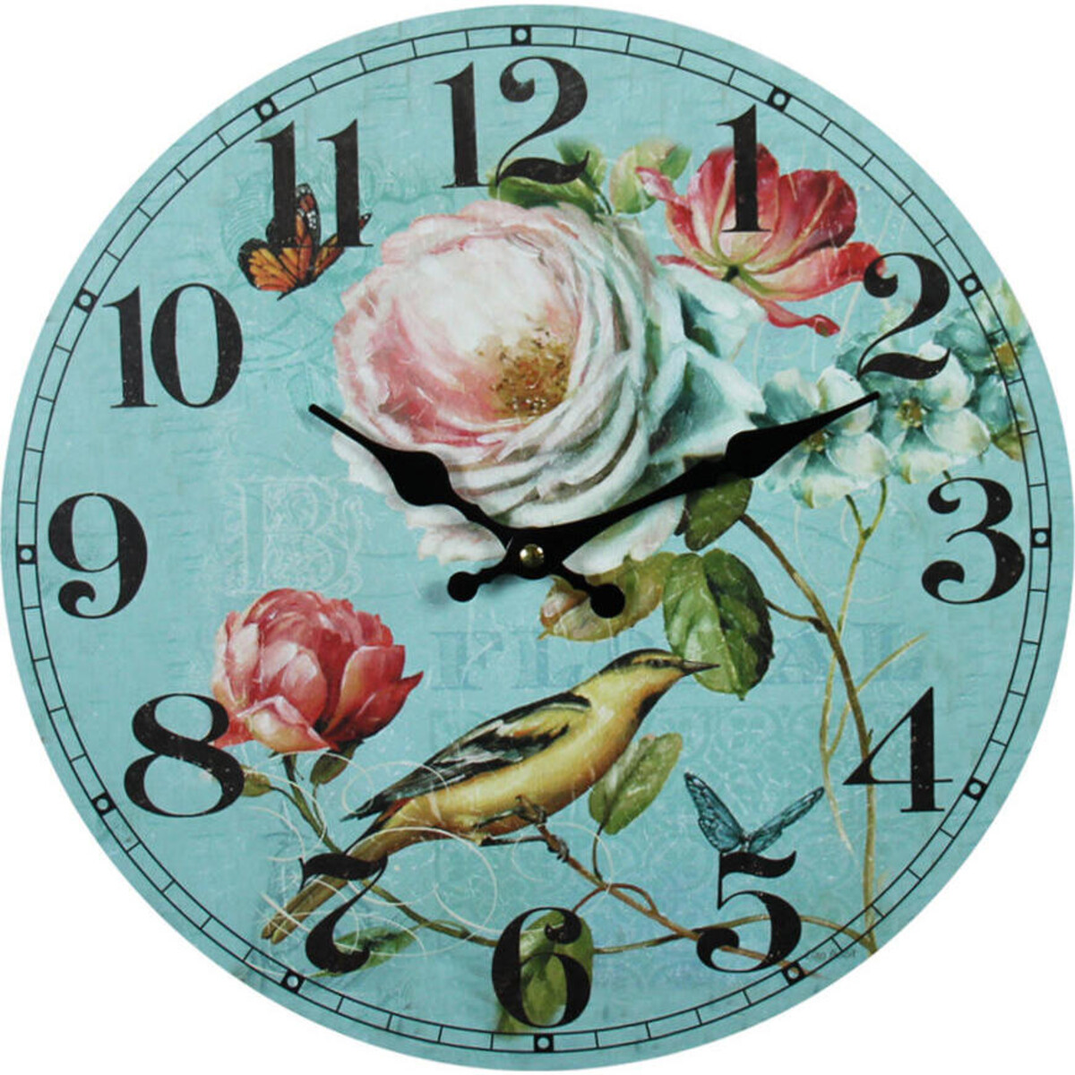 The butterflies, peonies and the birds create a collage of things happy and serene. The setting as if way back in time when time was in plenty and the day not so rushed and devoid of languor. Here is wall clock that seem to be bring back the time when you had the luxury of time itself. The clock is all of 34 cm in diameter and its face is a floral and very cottage and farm in appeal and would lend your Victorina, heritage or shabby chic antique look home just the right kind of support. The clock despite its very antique looks comes with modern mechanism that will support perfect time keeping. Add this clock to any wall space and expect a lot in return in term sf how it enhances the feel of your vintage or cottage and farm feel décor. The rimless clock comes with black hands and numerals in black to help see time more clearly even from a distance.